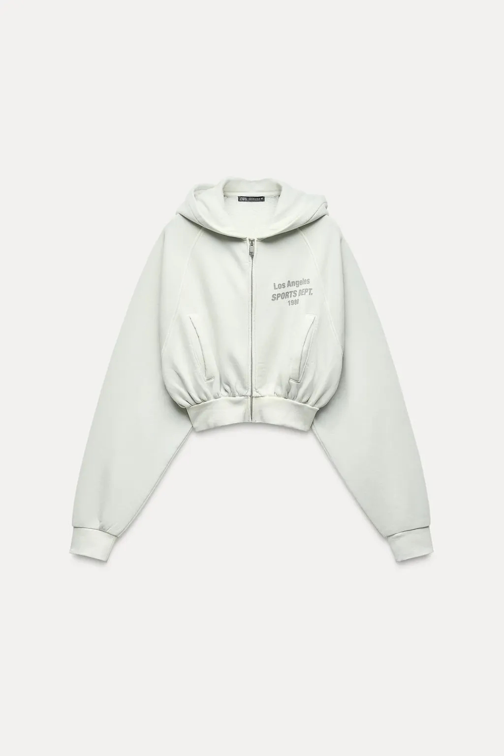 Sudadera crop con capucha. Manga larga acabada en puño. Bolsillos en delantero de vivo. Texto en delantero y espalda. Cierre frontal con cremallera metálica.