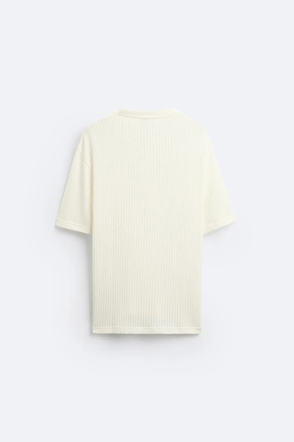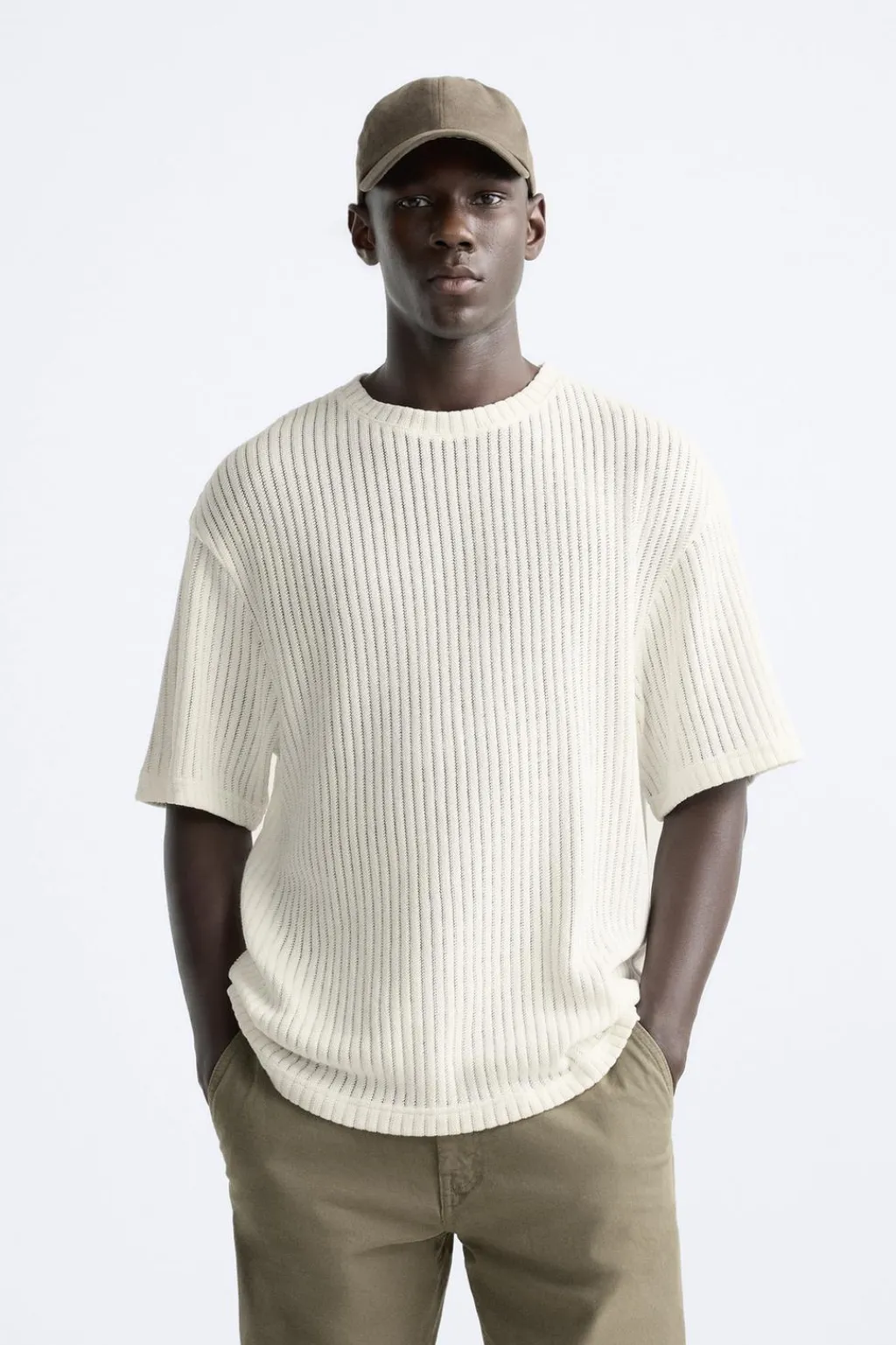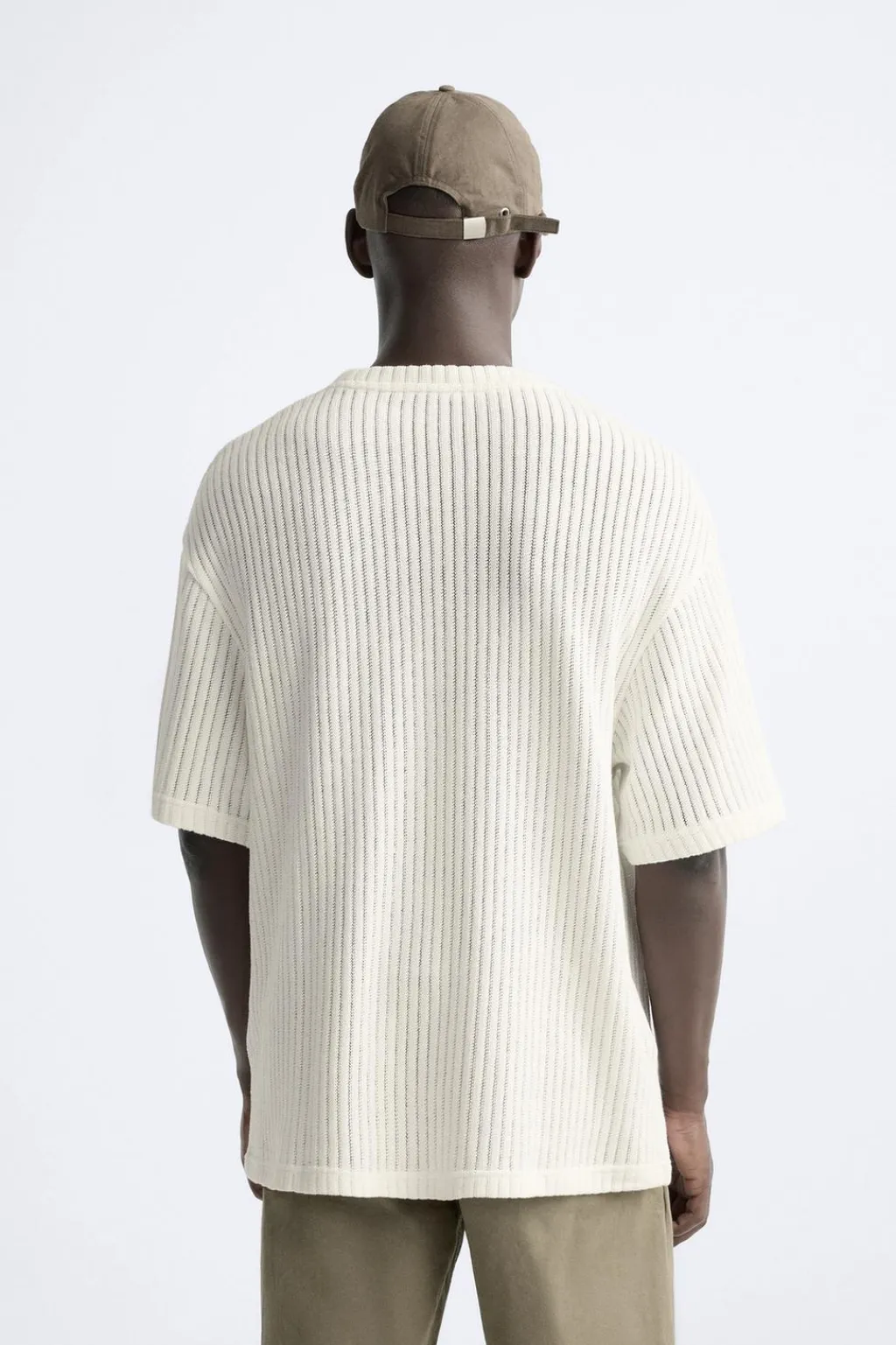 Sudadera relaxed fit confeccionada en tejido con estructura abierta. Cuello redondo y manga corta.