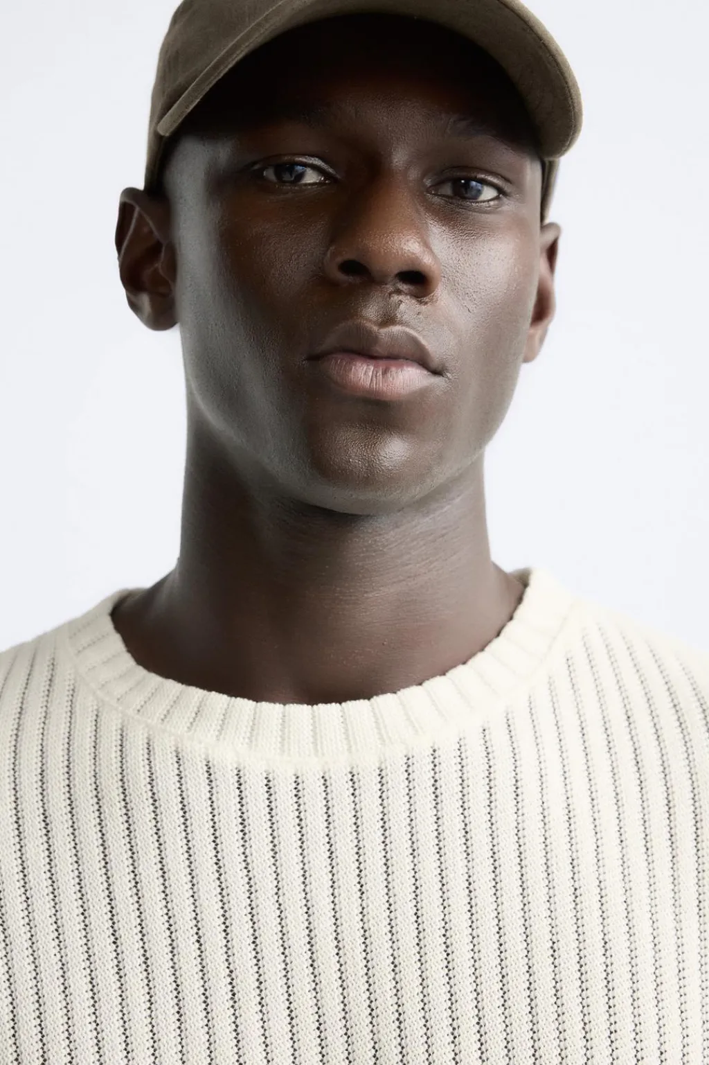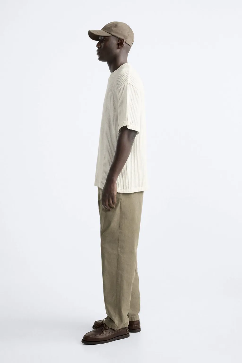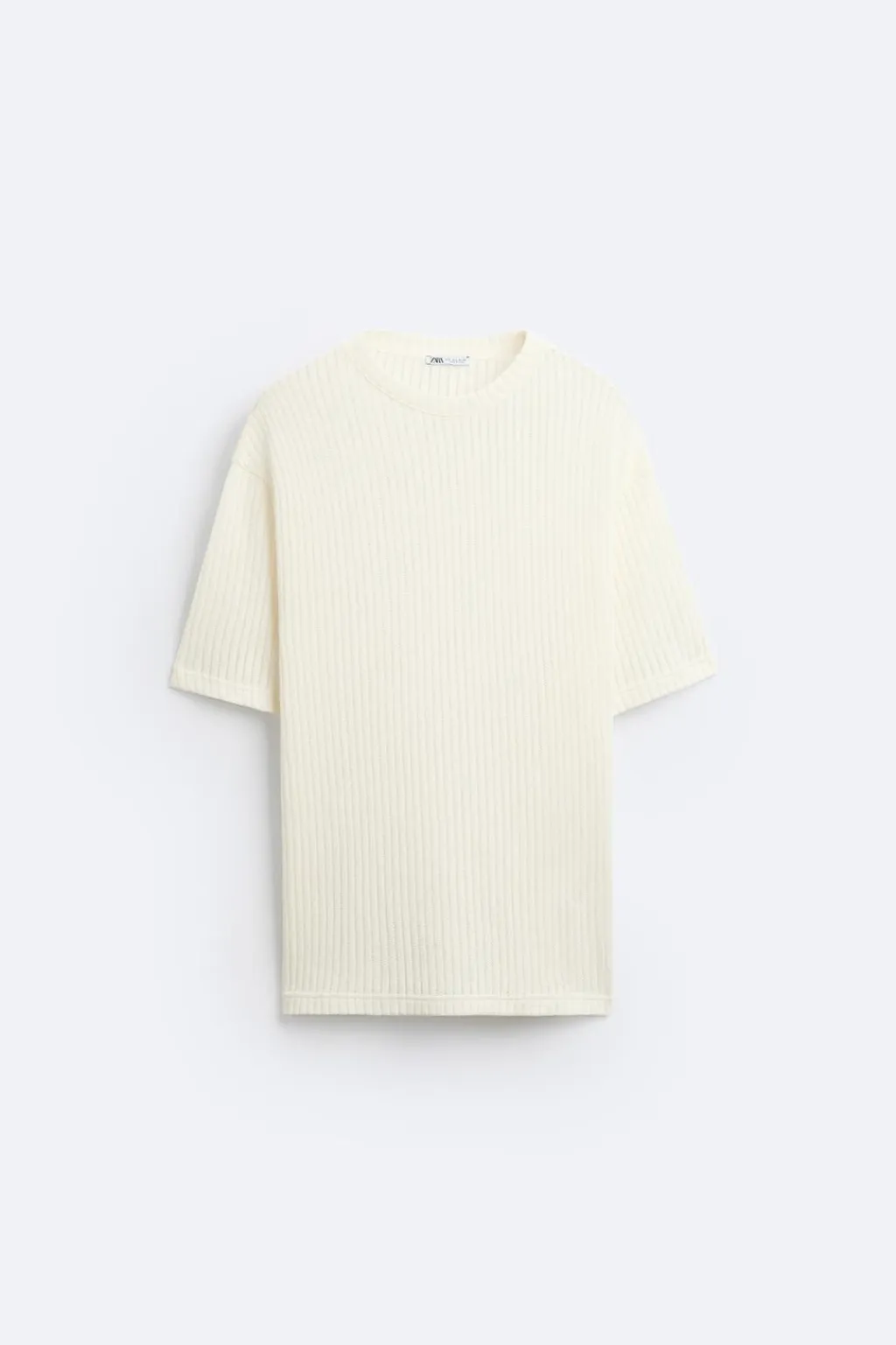 Sudadera relaxed fit confeccionada en tejido con estructura abierta. Cuello redondo y manga corta.