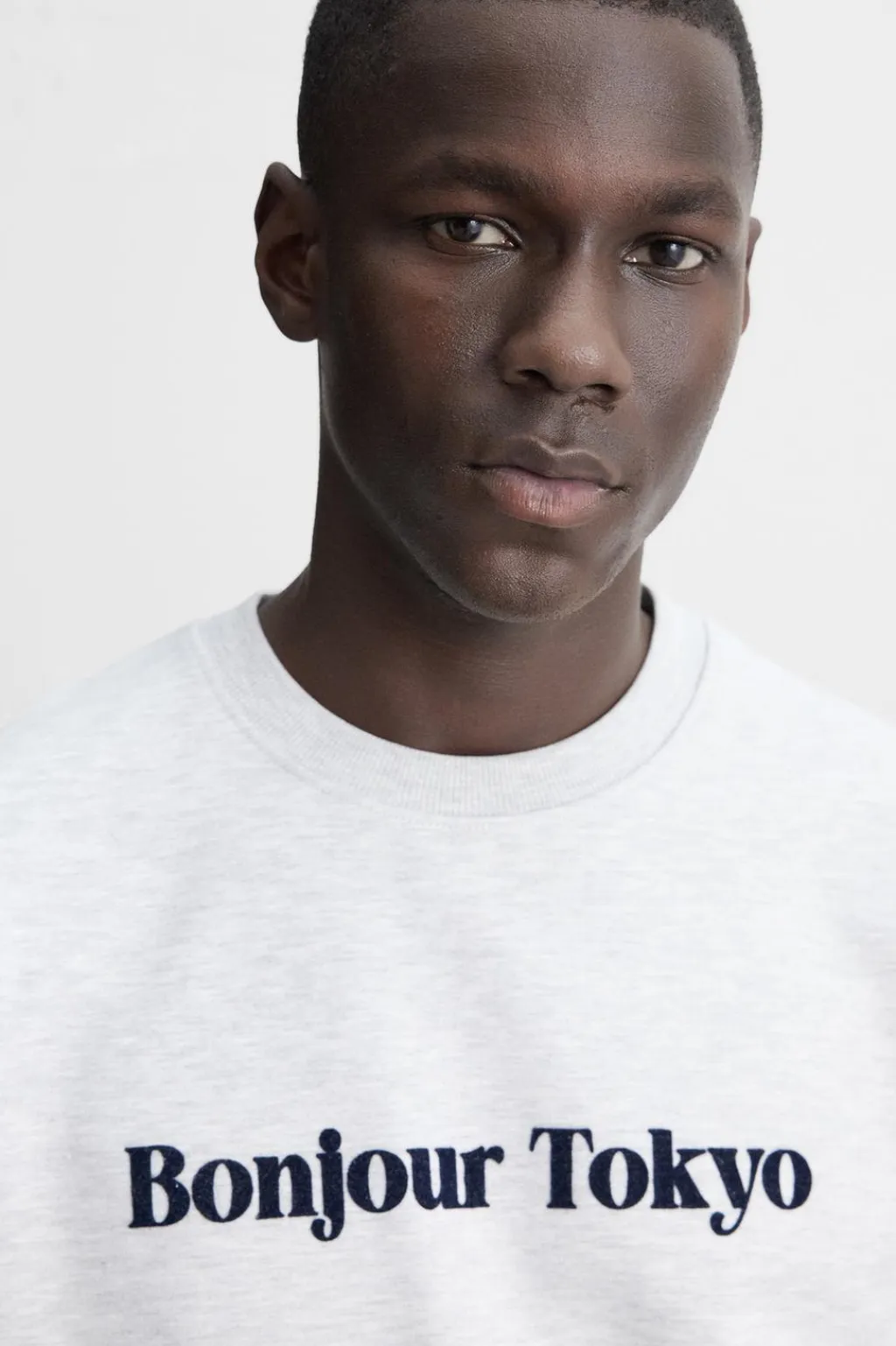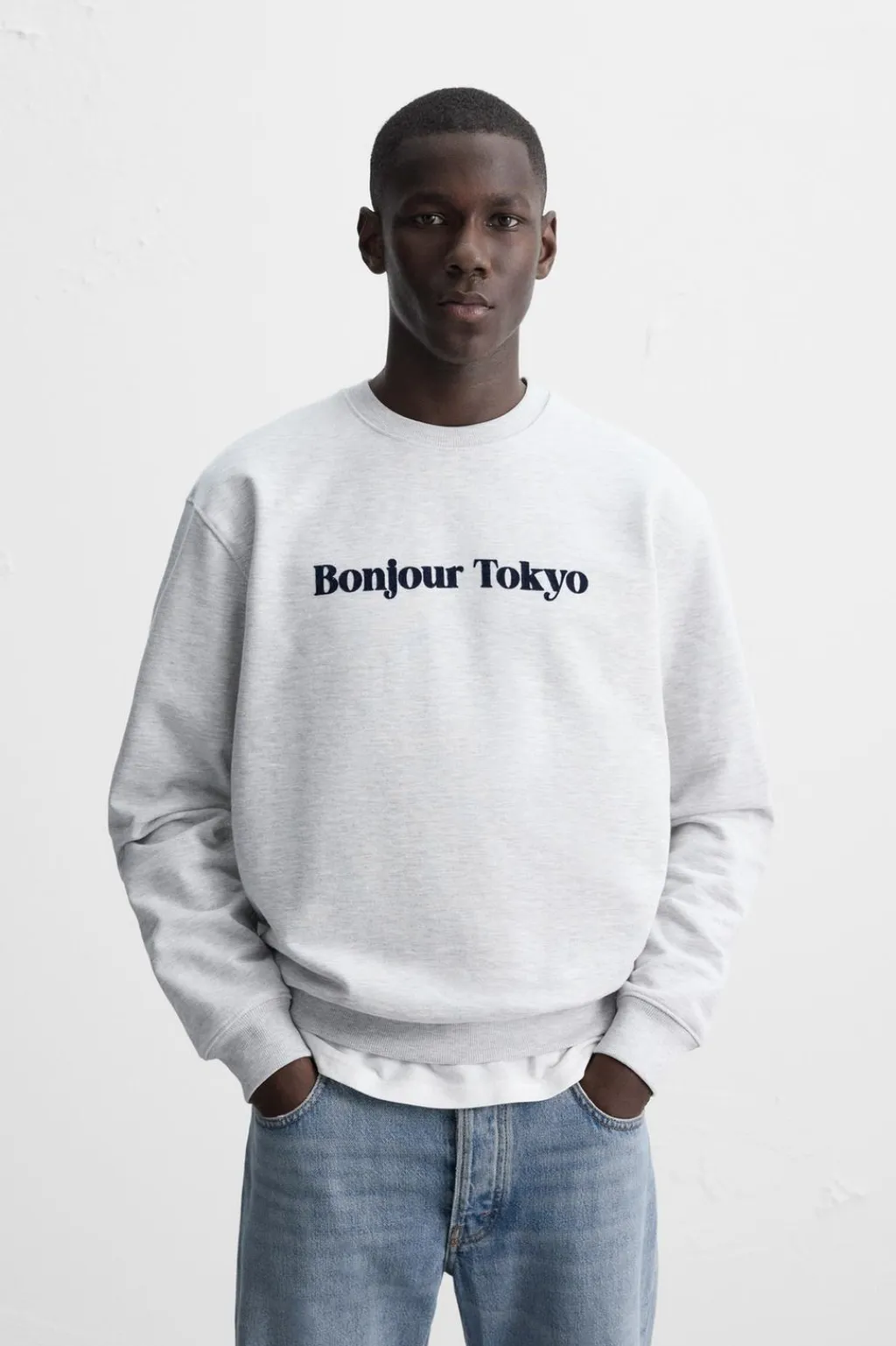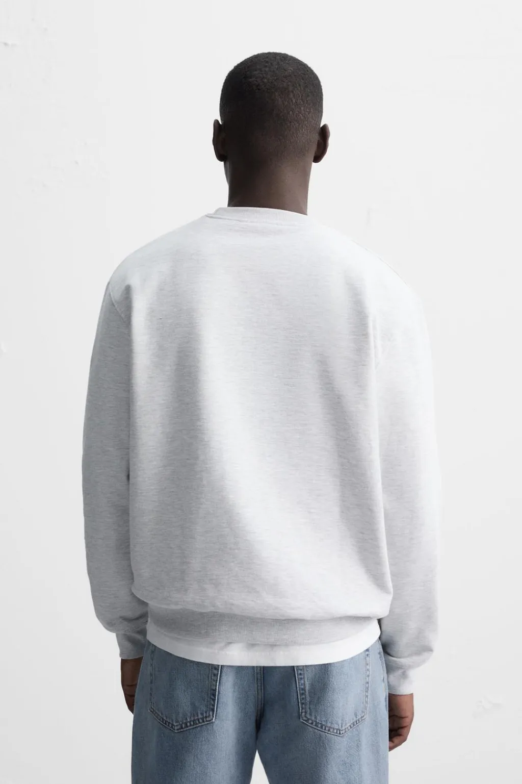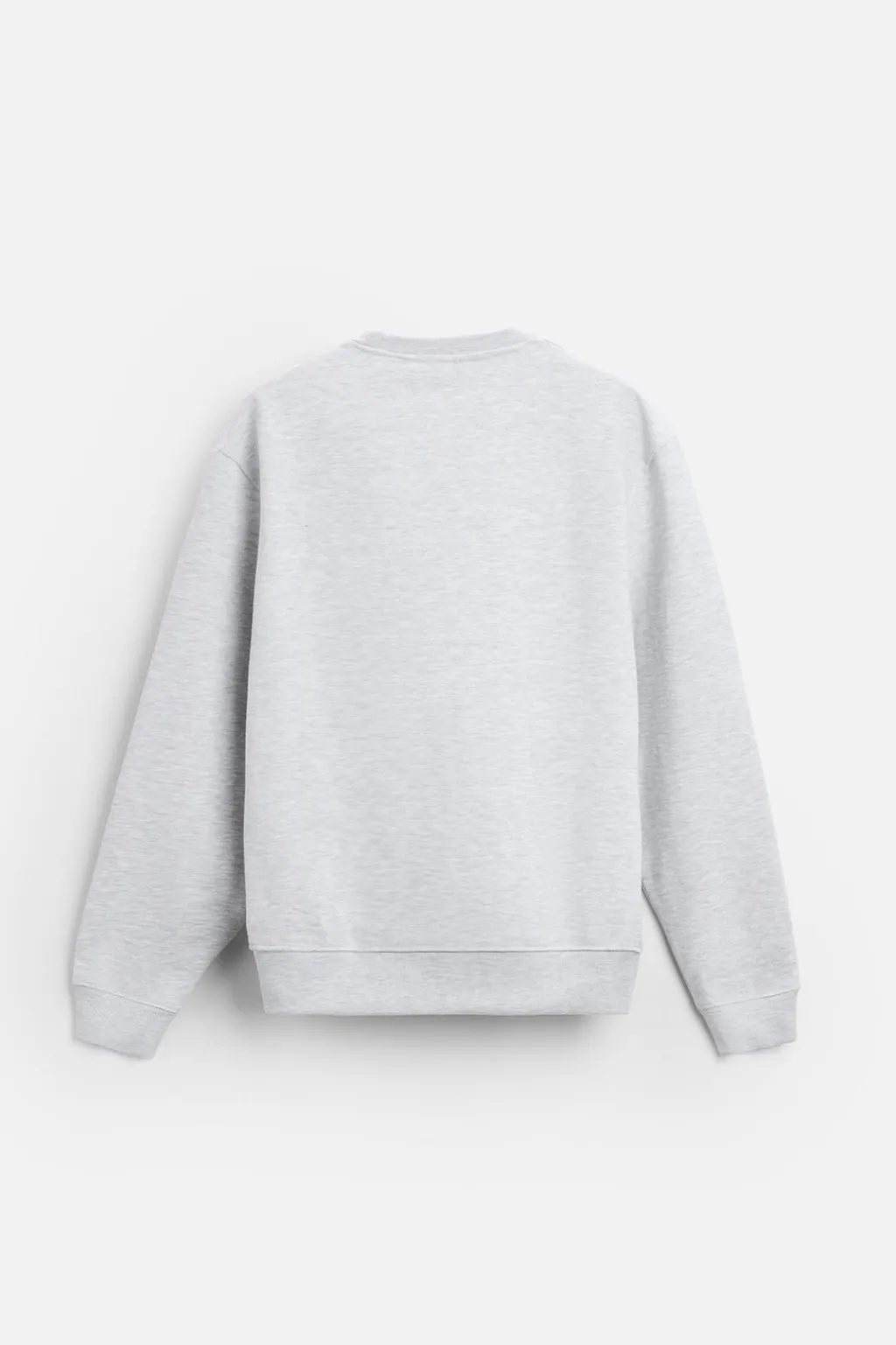 Sudadera regular fit confeccionada en algodón con el interior perchado. Cuello redondo y manga larga. Texto estampado combinado a contraste en delantero. Acabados en rib.