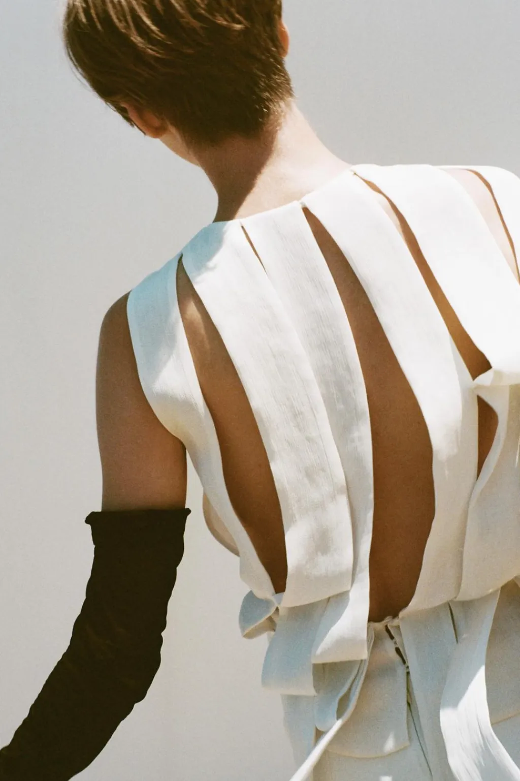Top confeccionado en hilatura de lyocell. Cuello redondo y manga sisa. Detalle de abertura en espalda y cintas en mismo tejido. Cierre con botones.