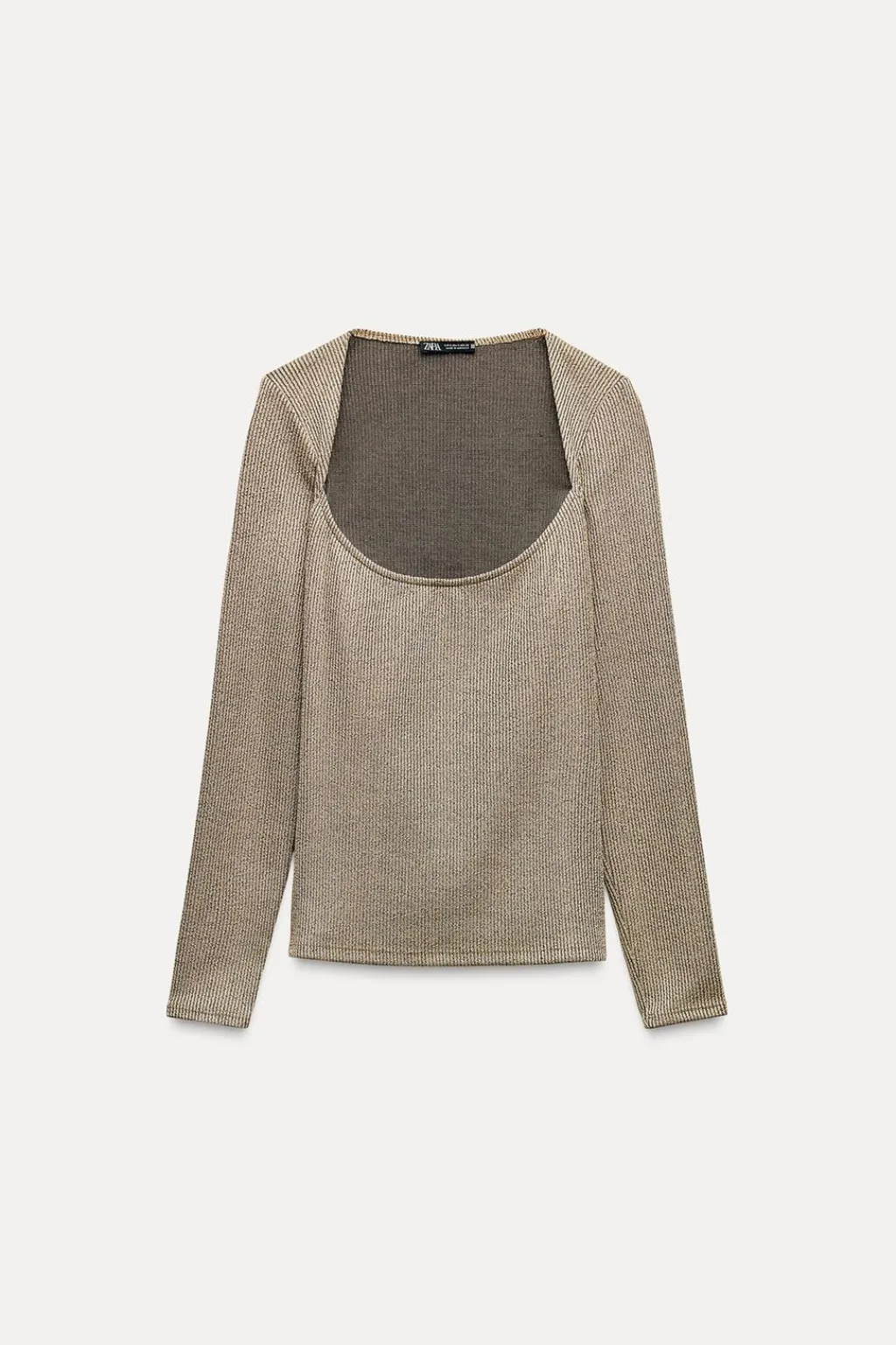 Top de escote cuadrado y manga larga. Detalle de tejido con textura y aplicación de hilo metalizado.