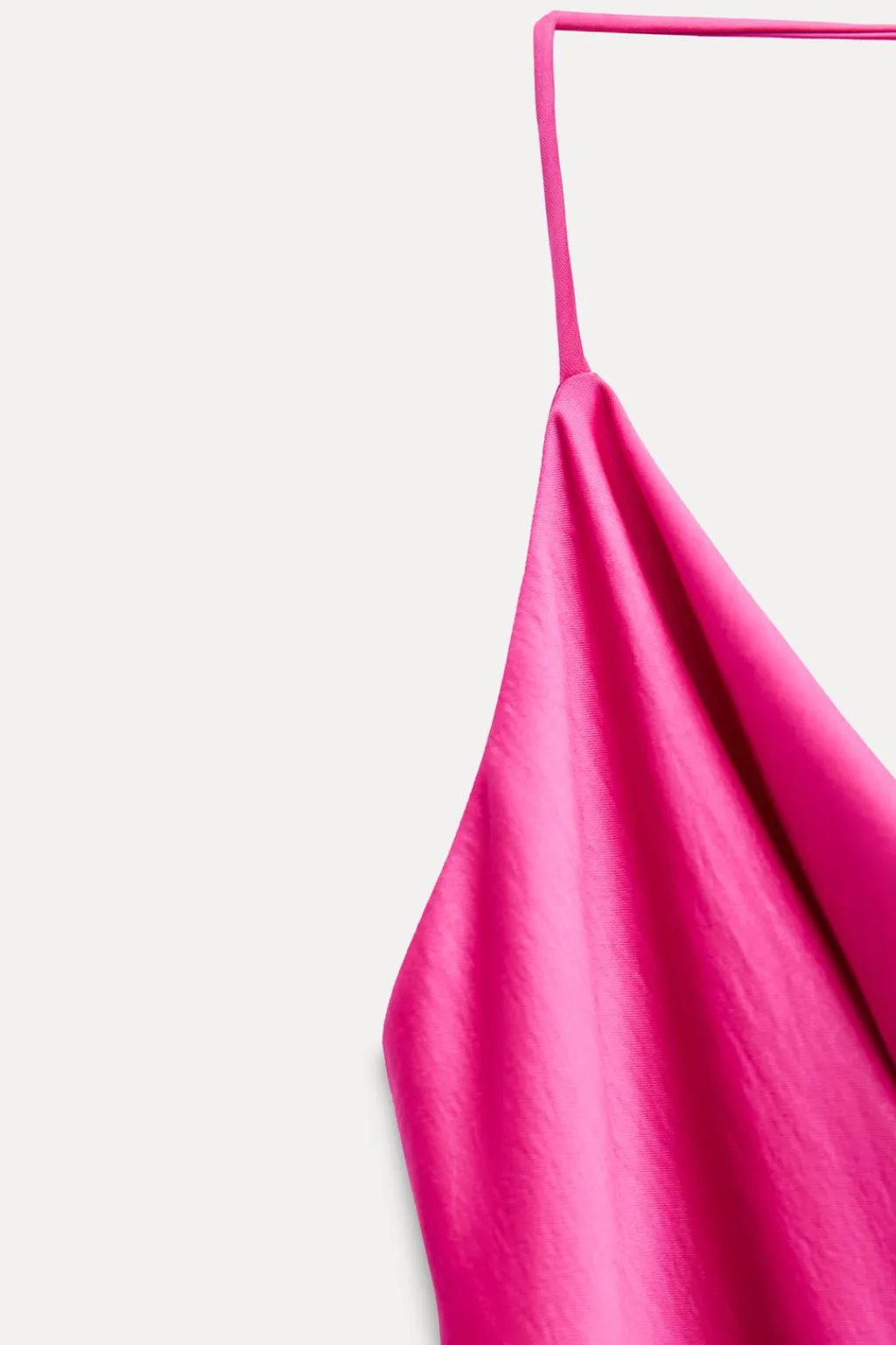 Vestido midi de escote fluido con tirante asimétrico y espalda descubierta.