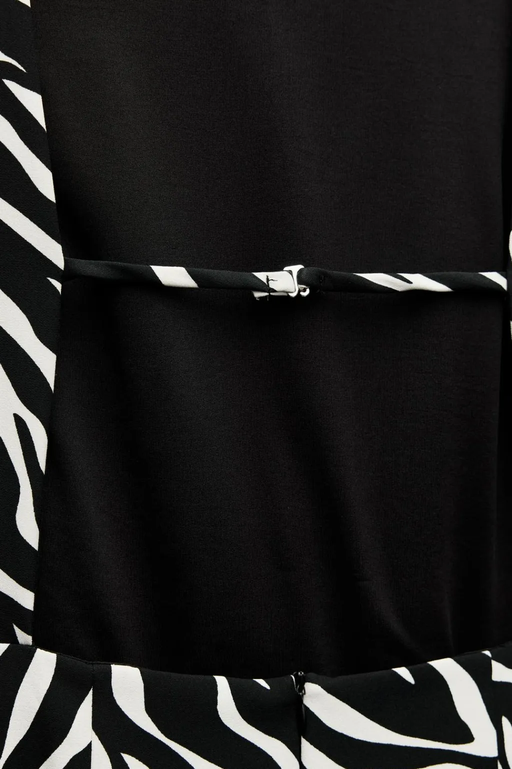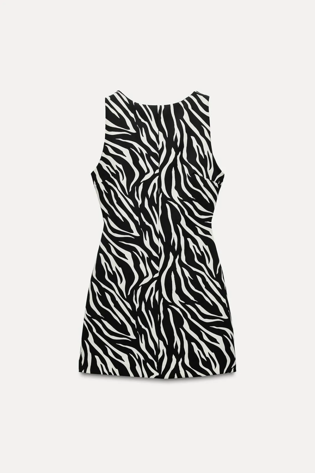 Vestido corto de cuello redondo y manga sisa. Detalle de abertura en espalda y tira. Cierre en espalda con cremallera oculta en costura.