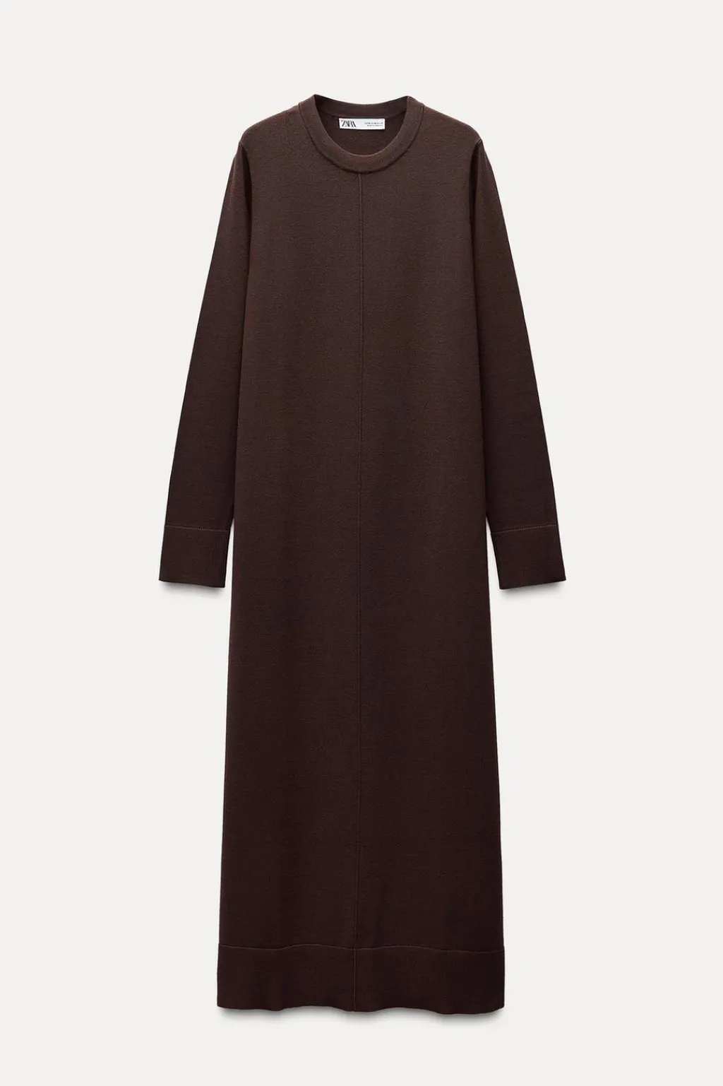 Vestido de cuello redondo y manga larga. Detalle de nervio delantero.