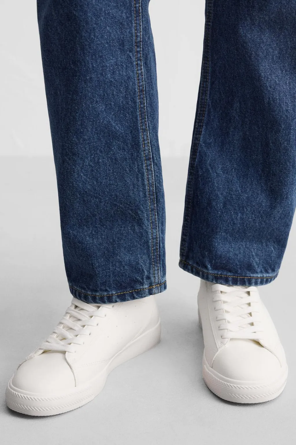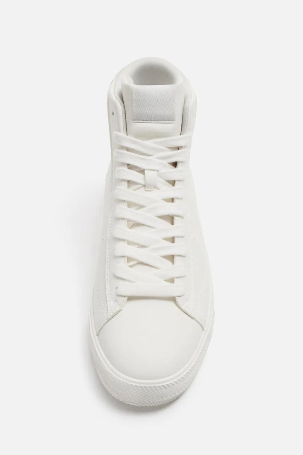 Zapatilla deportiva botín. Parte superior de corte liso con detalle perforado y detalle de pieza a contraste en la parte posterior. Cordonera con diez pasados. Suela con volumen y acabado irregular.