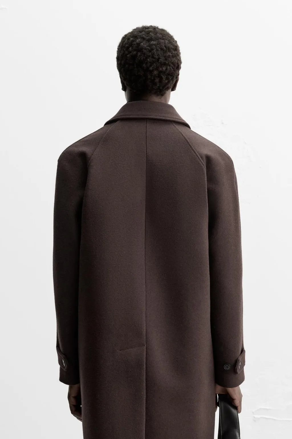 Abrigo relaxed fit confeccionado en tejido de lana con origen italiano.