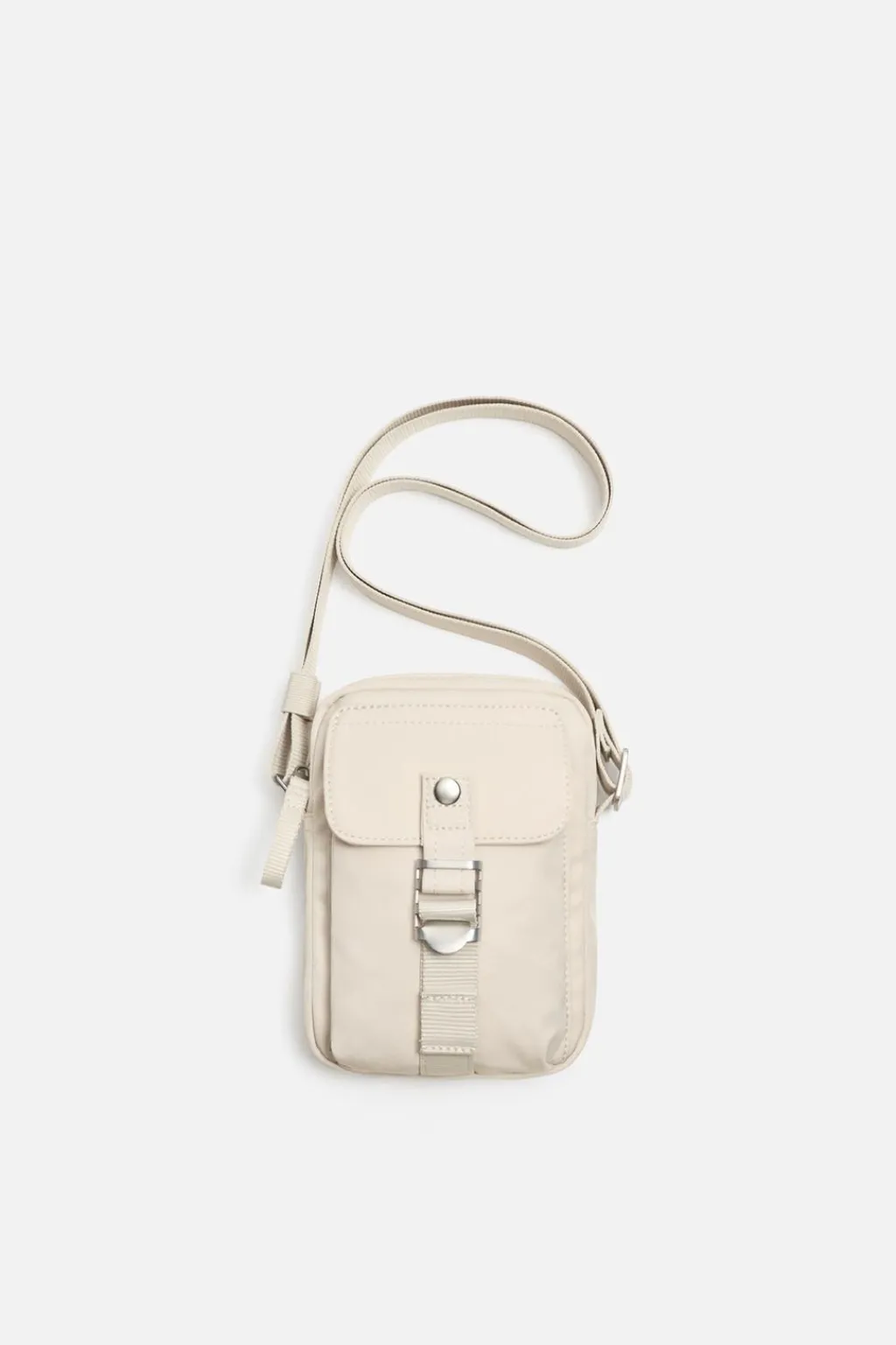 Bandolera confeccionada en tejido técnico. Compartimento principal con cierre mediante cremallera. Parte frontal con bolsillo con cierre mediante botón a presión. Asa de hombro ajustable.