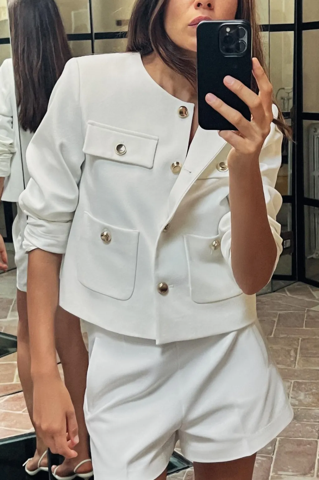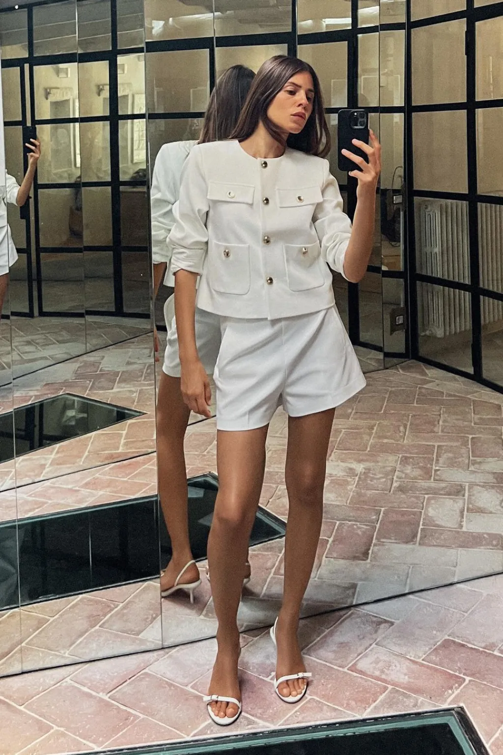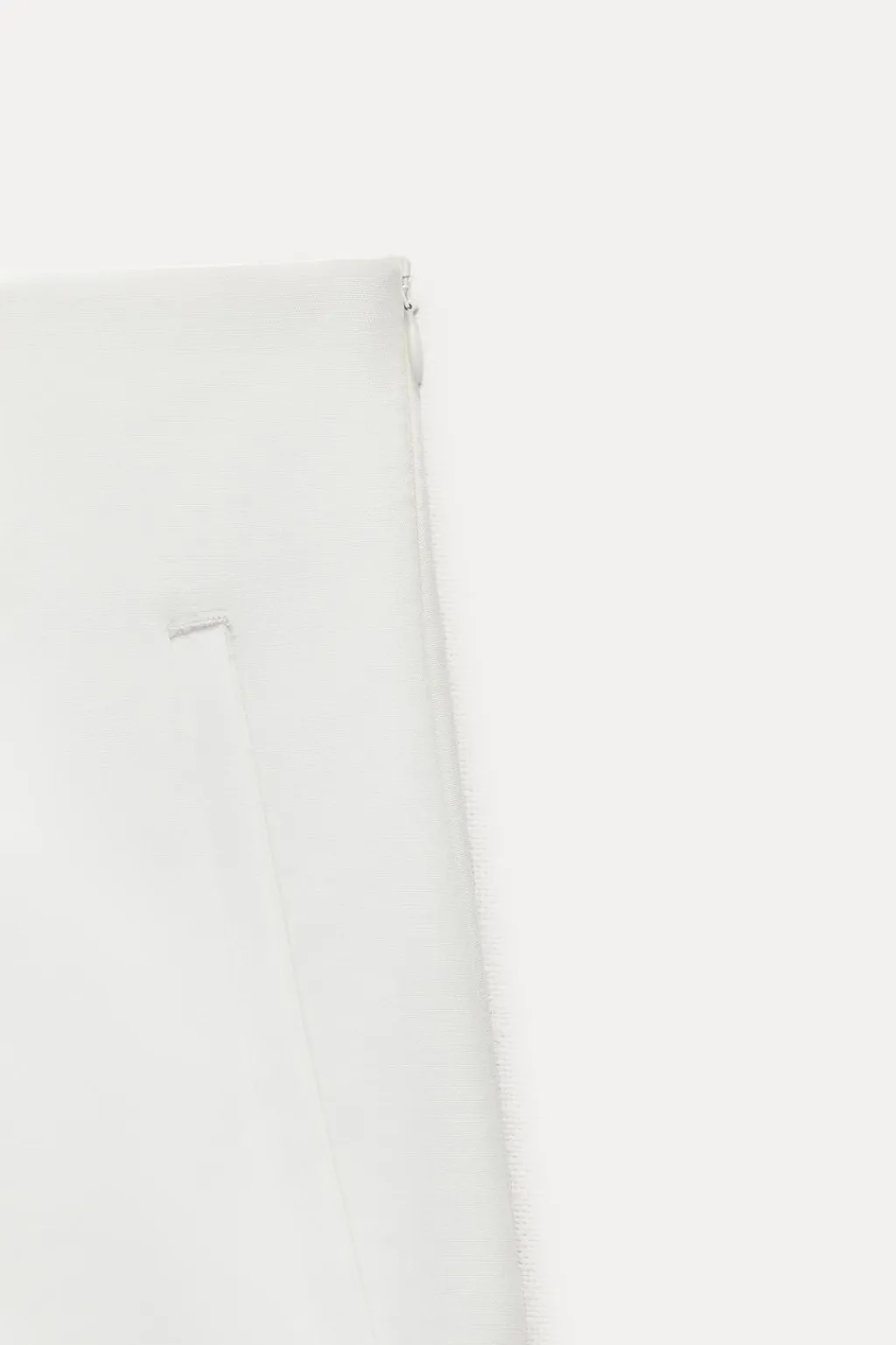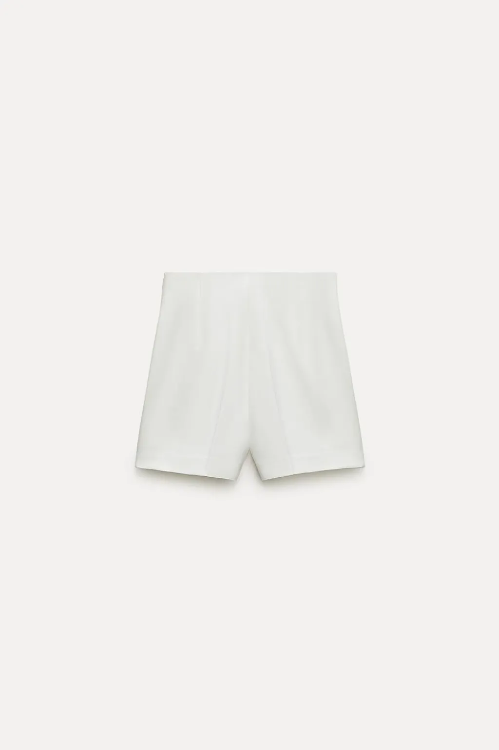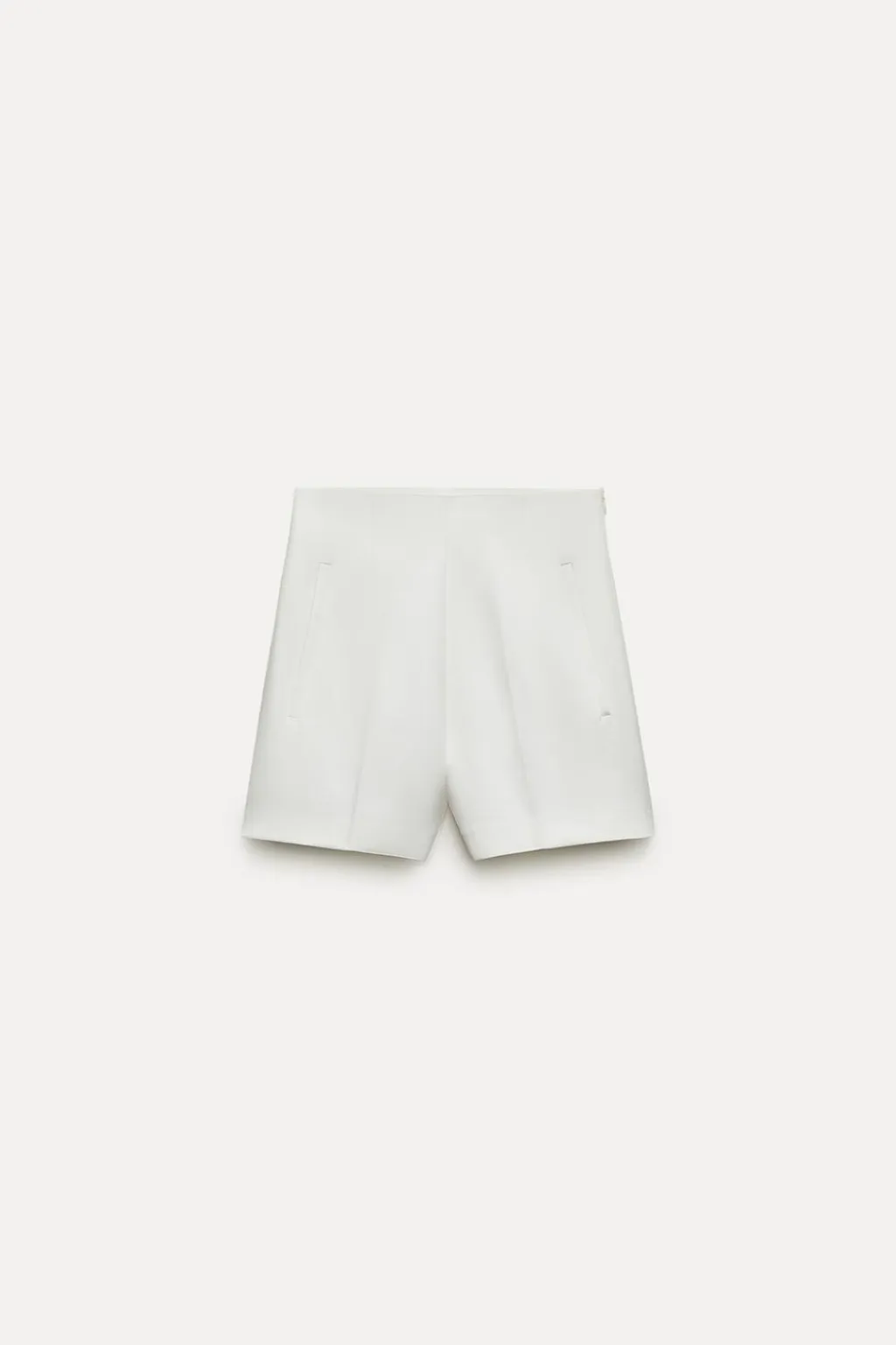 Bermuda de tiro alto con bolsillos delanteros de vivo. Cierre lateral con cremallera oculta en costura.