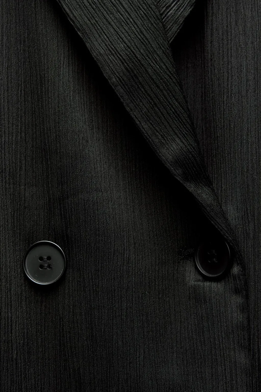 Blazer de cuello solapa y manga larga acabada en vuelta. Cierre frontal cruzado con botones. Detalle de tejido efecto arrugado.