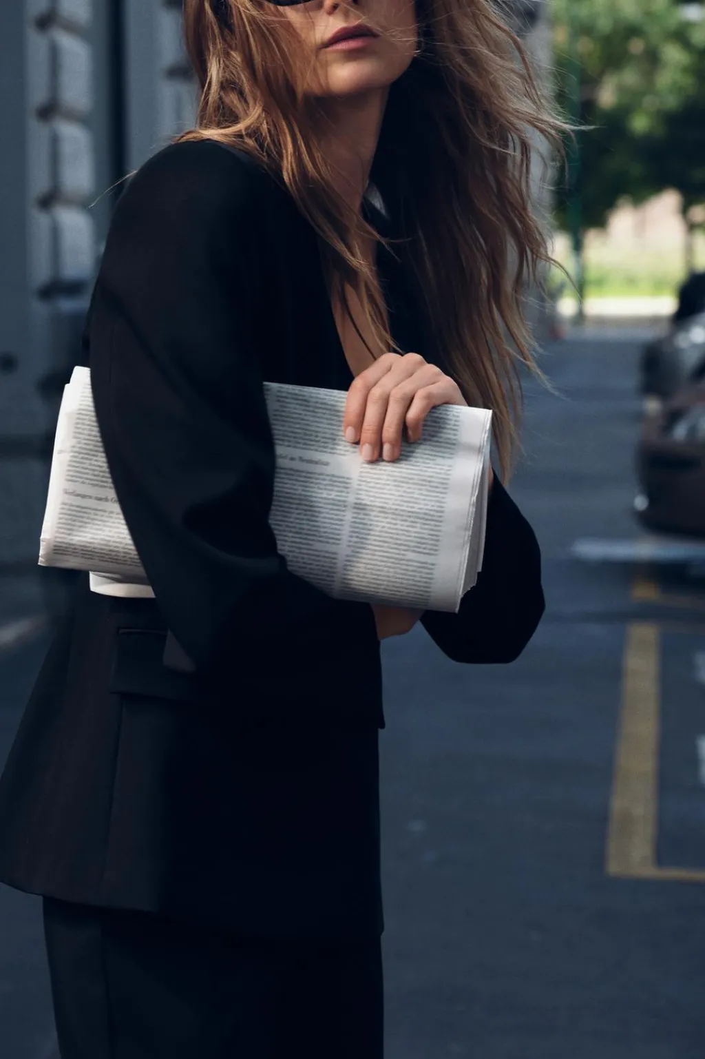 Blazer con escote redondo y manga larga con hombreras. Bolsillos delanteros con solapa. Cierre frontal con botones dorados.