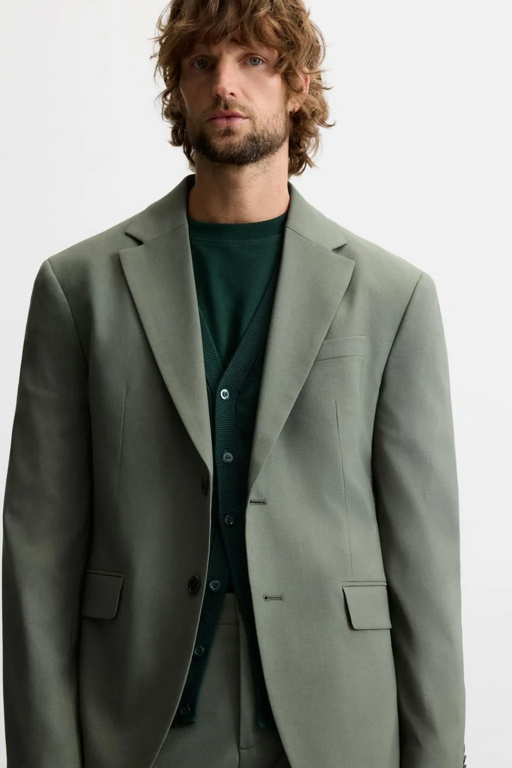 Blazer regular fit. Cuello con solapas de muesca. Manga larga acabada en puño con detalle de botones. Bolsillo de vivo en pecho y de solapa en cadera. Detalle bolsillo interior. Bajo con aberturas en espalda. Cierre frontal con botones.