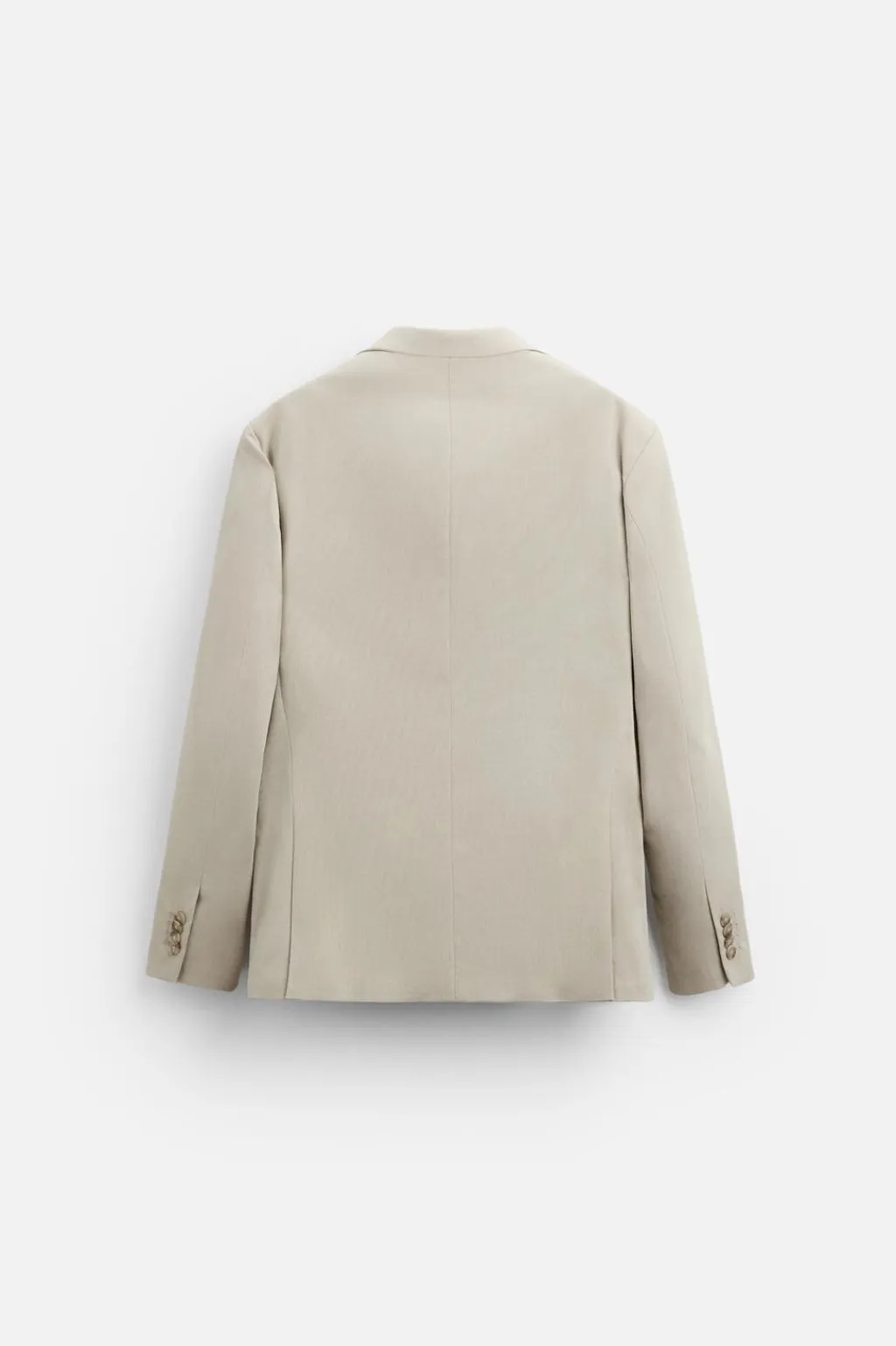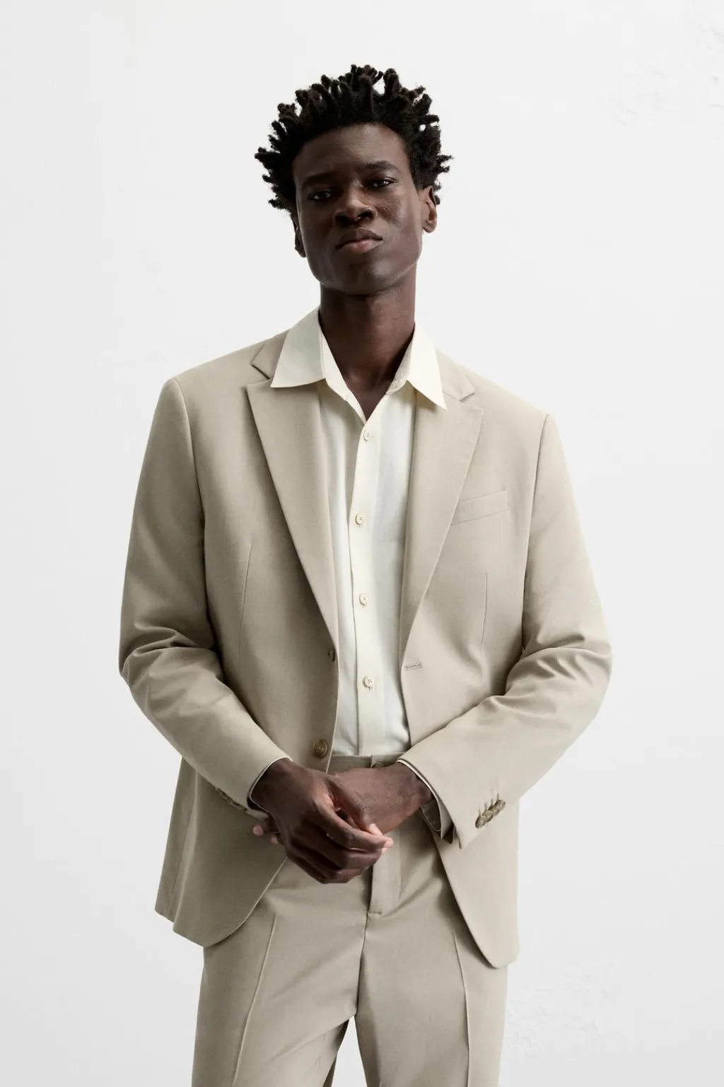 Blazer regular fit confeccionada en tejido con elasticidad. Cuello con solapas de muesca. Manga larga acabada en puño con detalle de botones. Bolsillo de vivo en pecho y de solapa en cadera. Detalle bolsillo interior. Bajo con aberturas en espalda. Cierre frontal con botones.