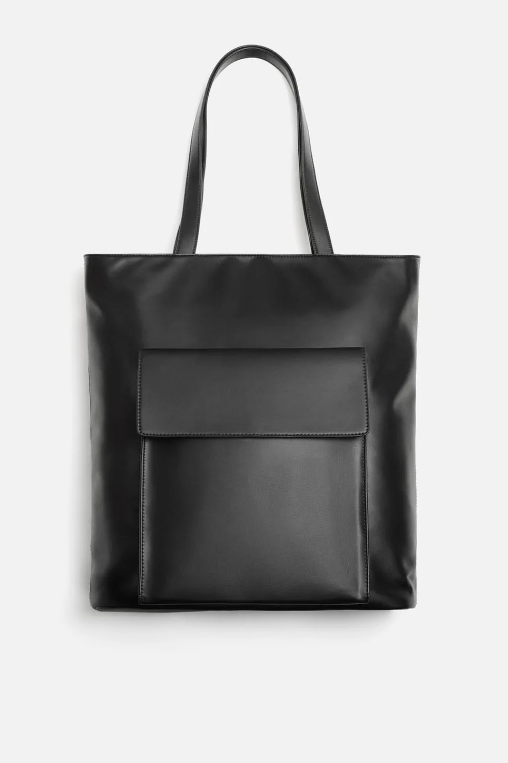 Bolso tipo shopper. Compartimento principal con cierre mediante botón a presión. En su interior cuenta con un bolsillo con cierre de cremallera. En la parte frontal tiene un bolsillo de tamaño grande con cierre de solapa. Dispone de dos asas de mano y un asa de hombro extraíble y ajustable.