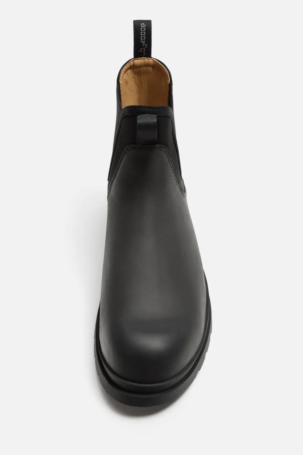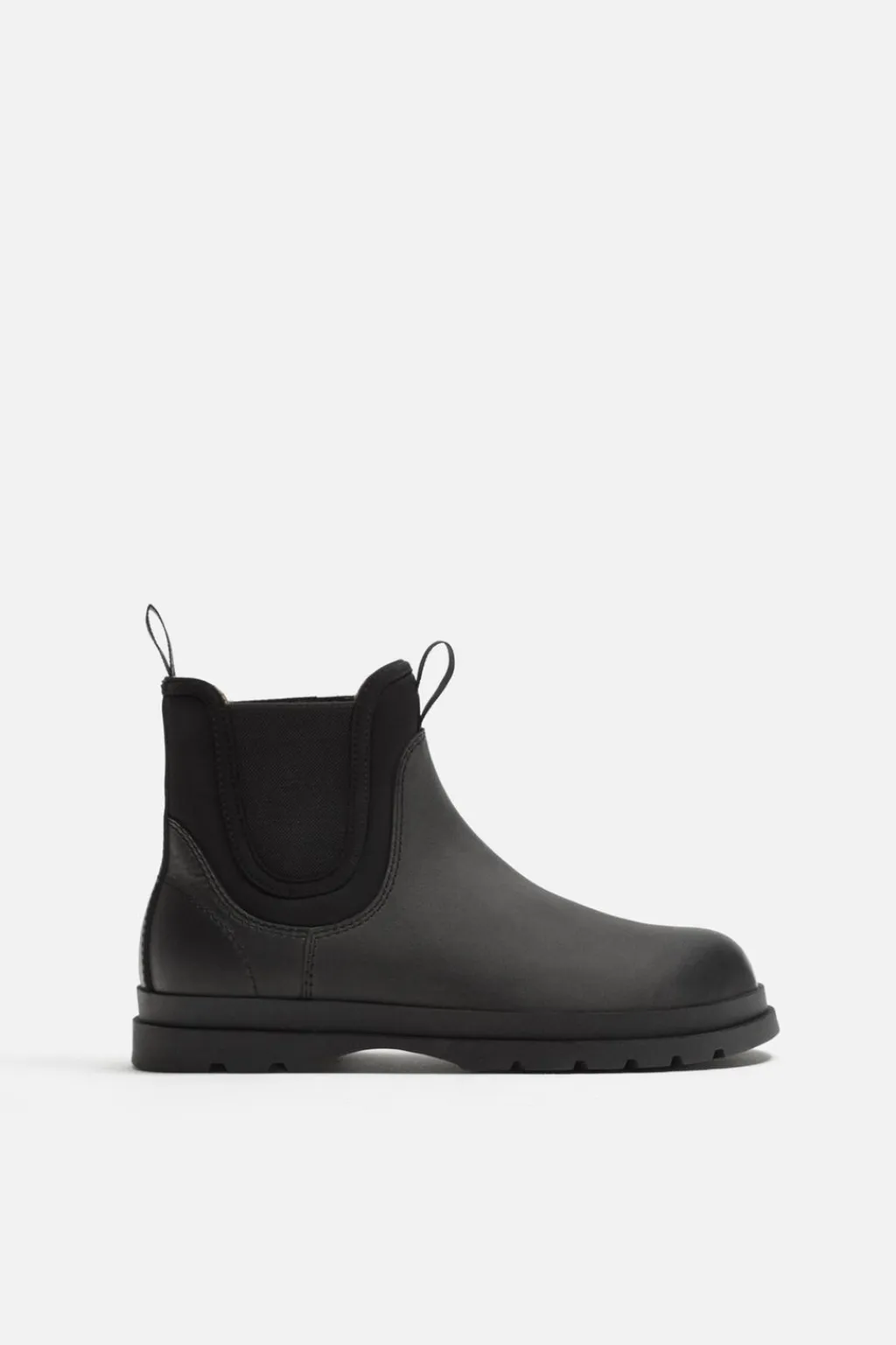 Bota estilo chelsea. Fabricada en piel. Cuenta con dos piezas elásticas laterales y dos tiradores para facilitar el calce. Plantilla interior fabricada en piel. Suela con algo de volumen.
