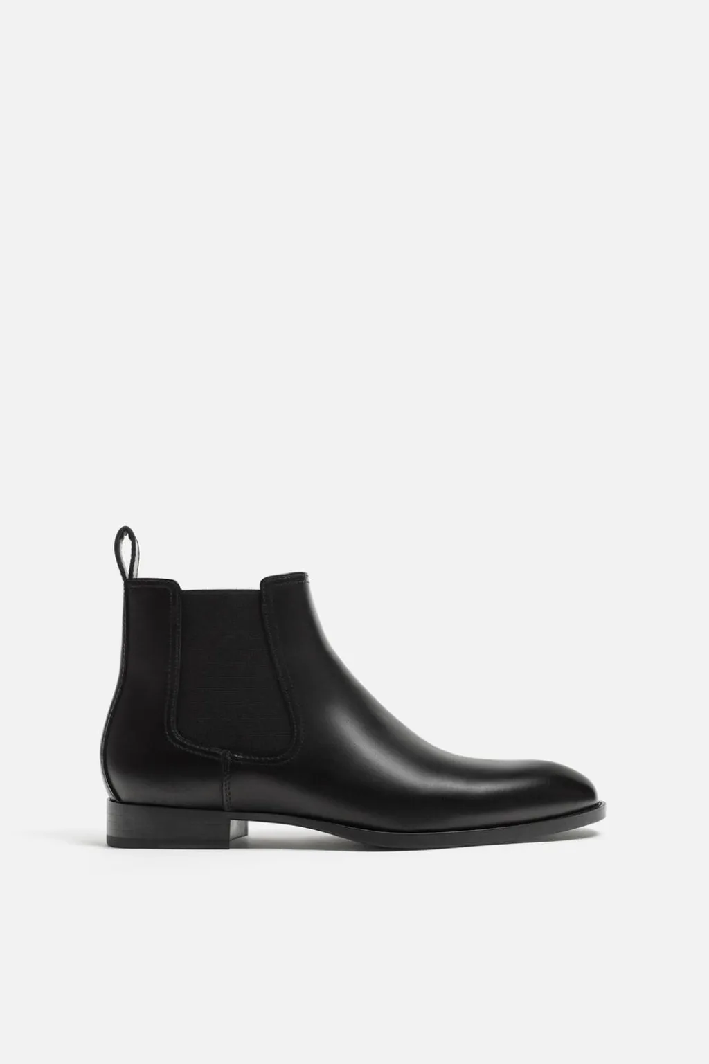 Bota tipo chelsea. Parte superior lisa. Cuenta con dos piezas elásticas laterales y tirador trasero para facilitar el calce. Horma en punta.
