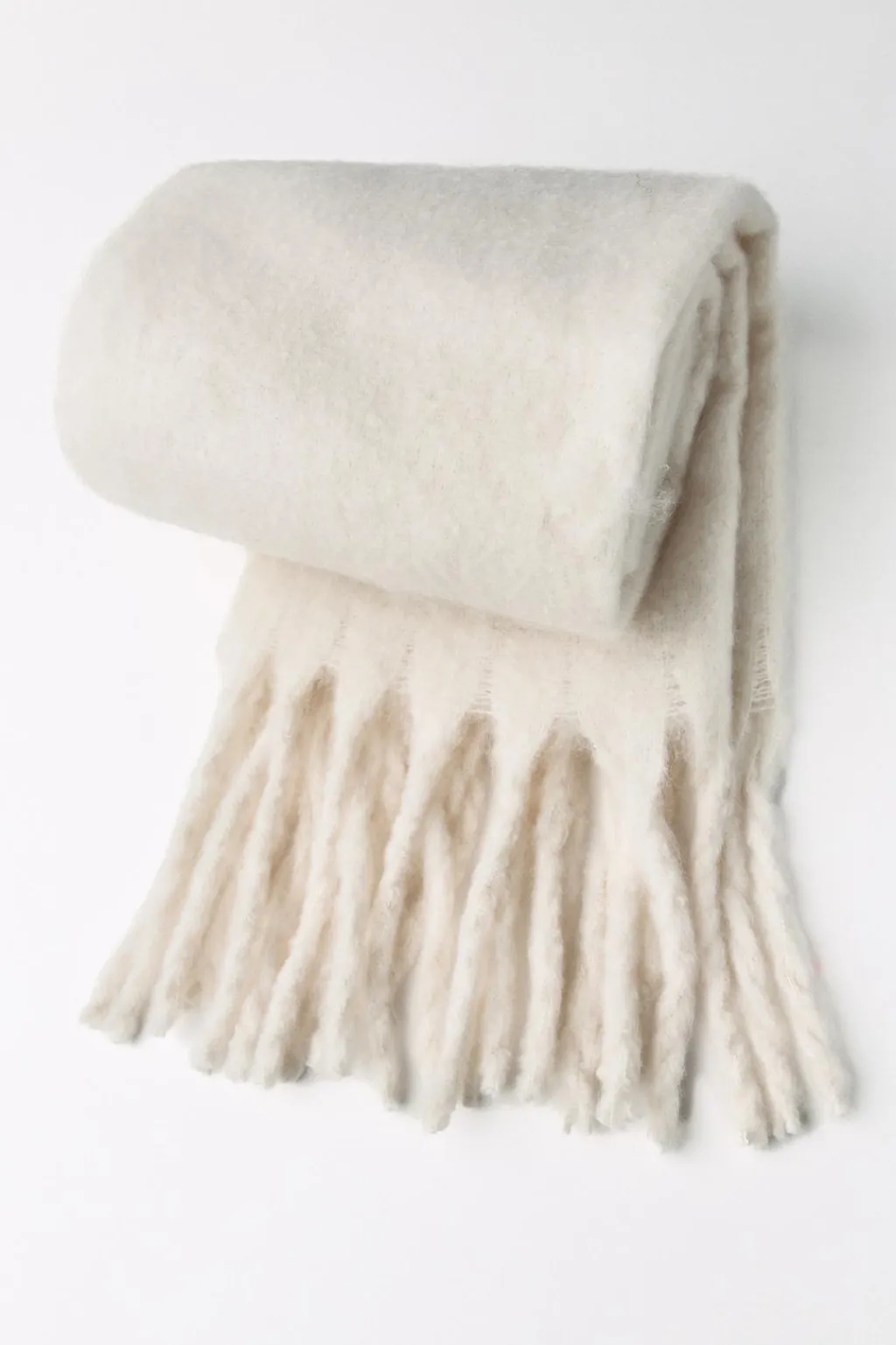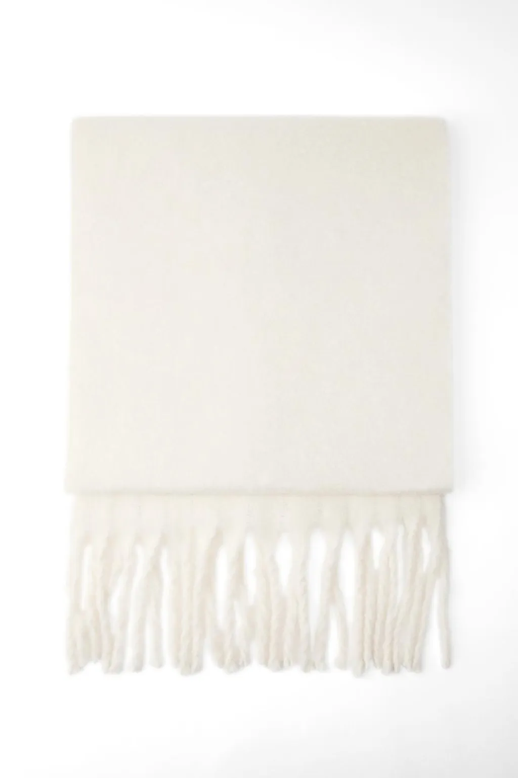 Bufanda con acabados en flecos a tono.