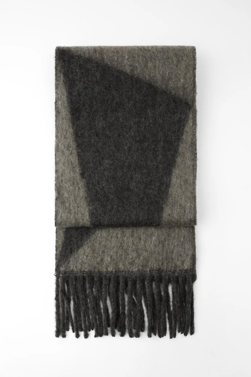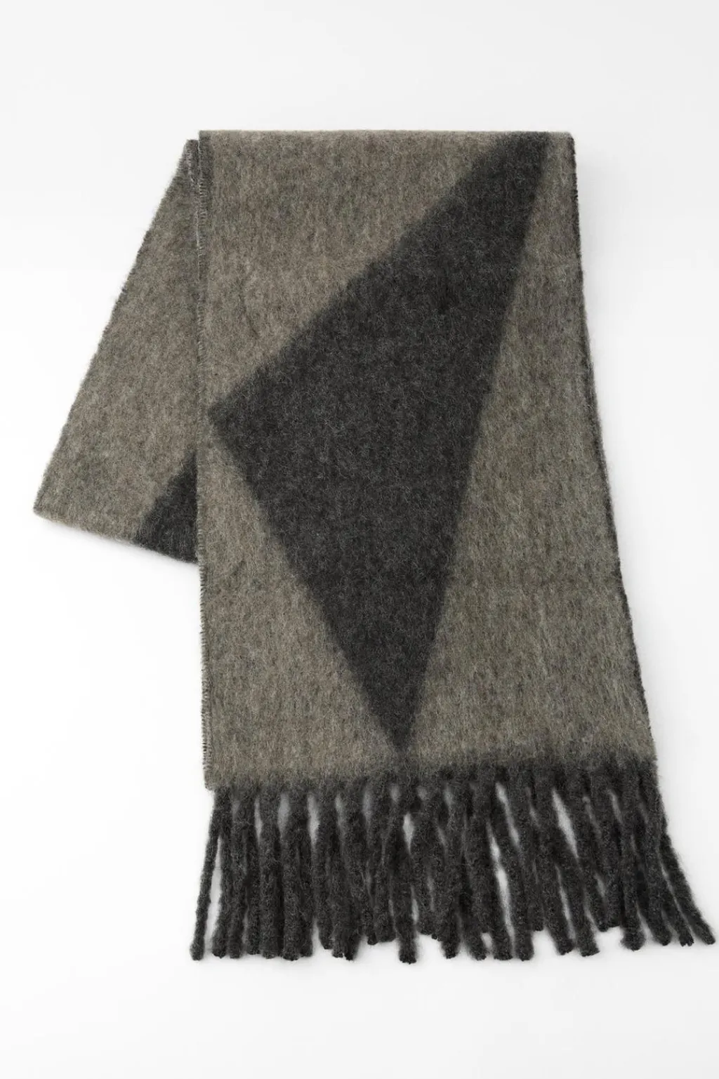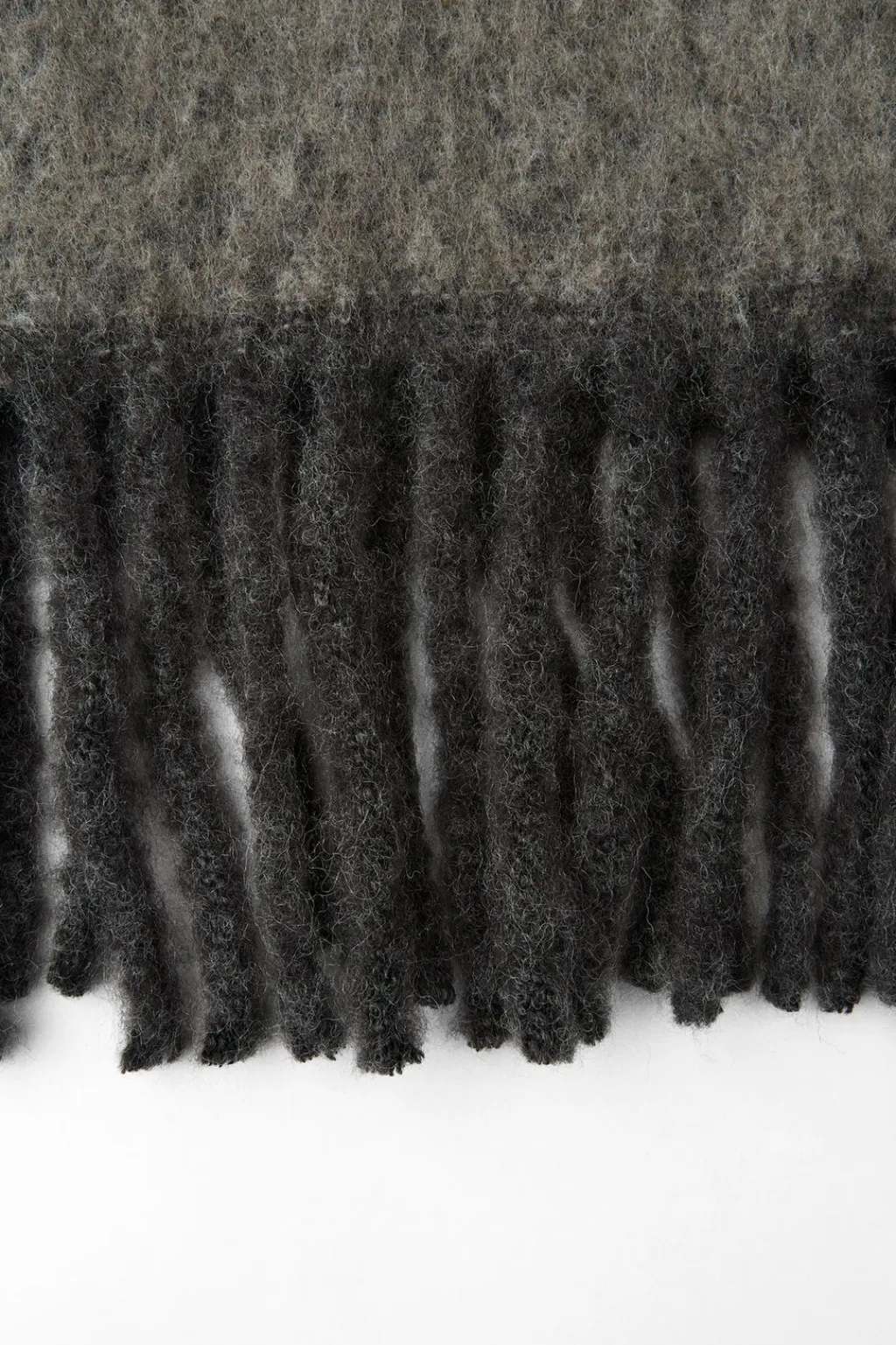 Bufanda confeccionada con 26% de lana. Acabados en flecos a tono.