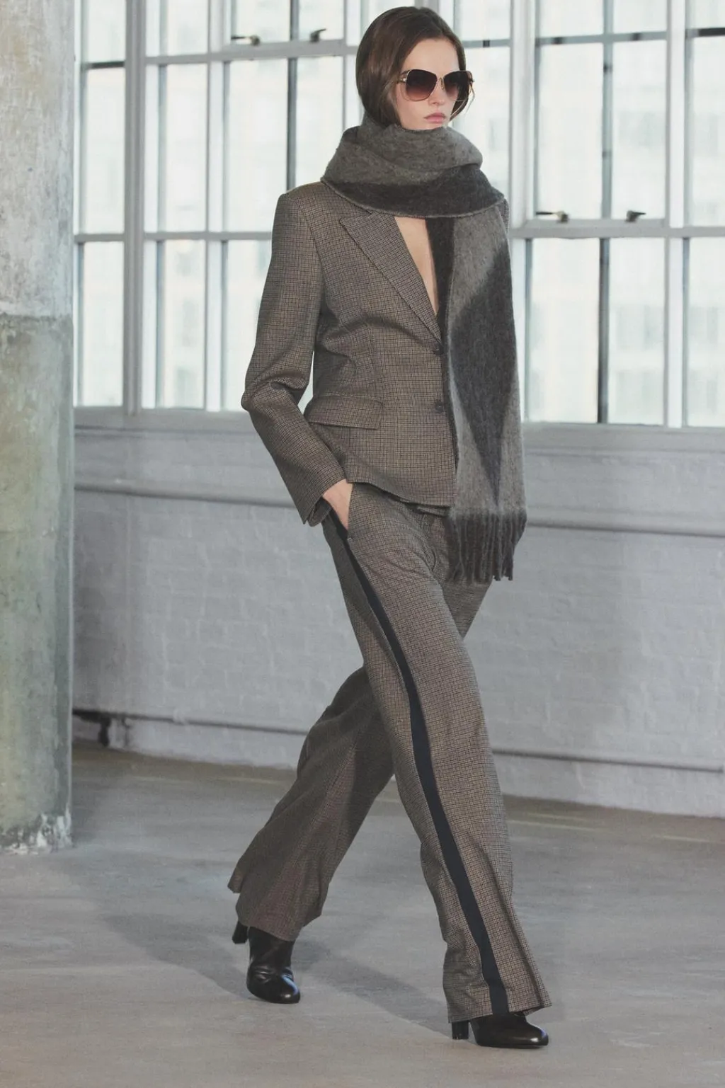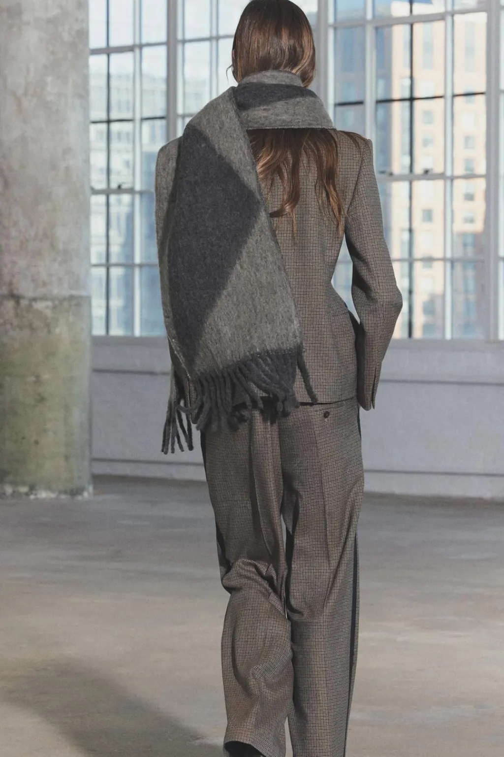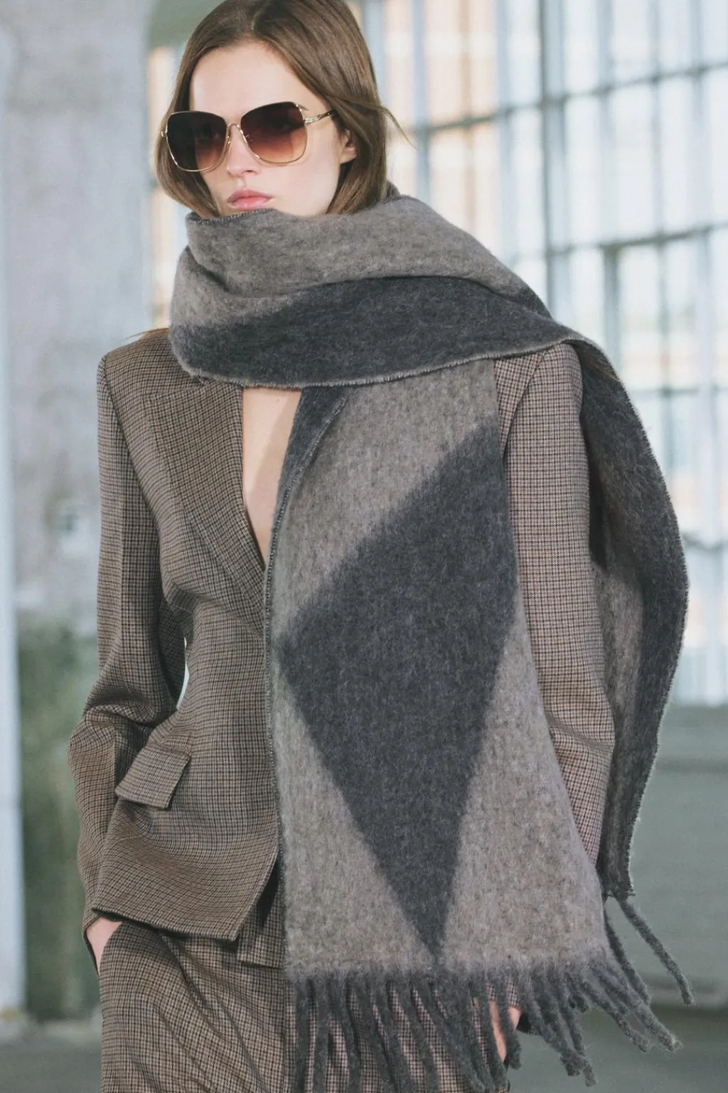 Bufanda confeccionada con 26% de lana. Acabados en flecos a tono.