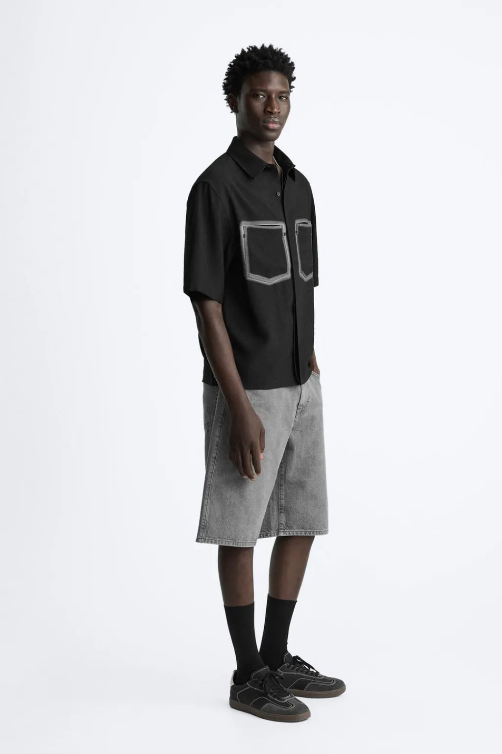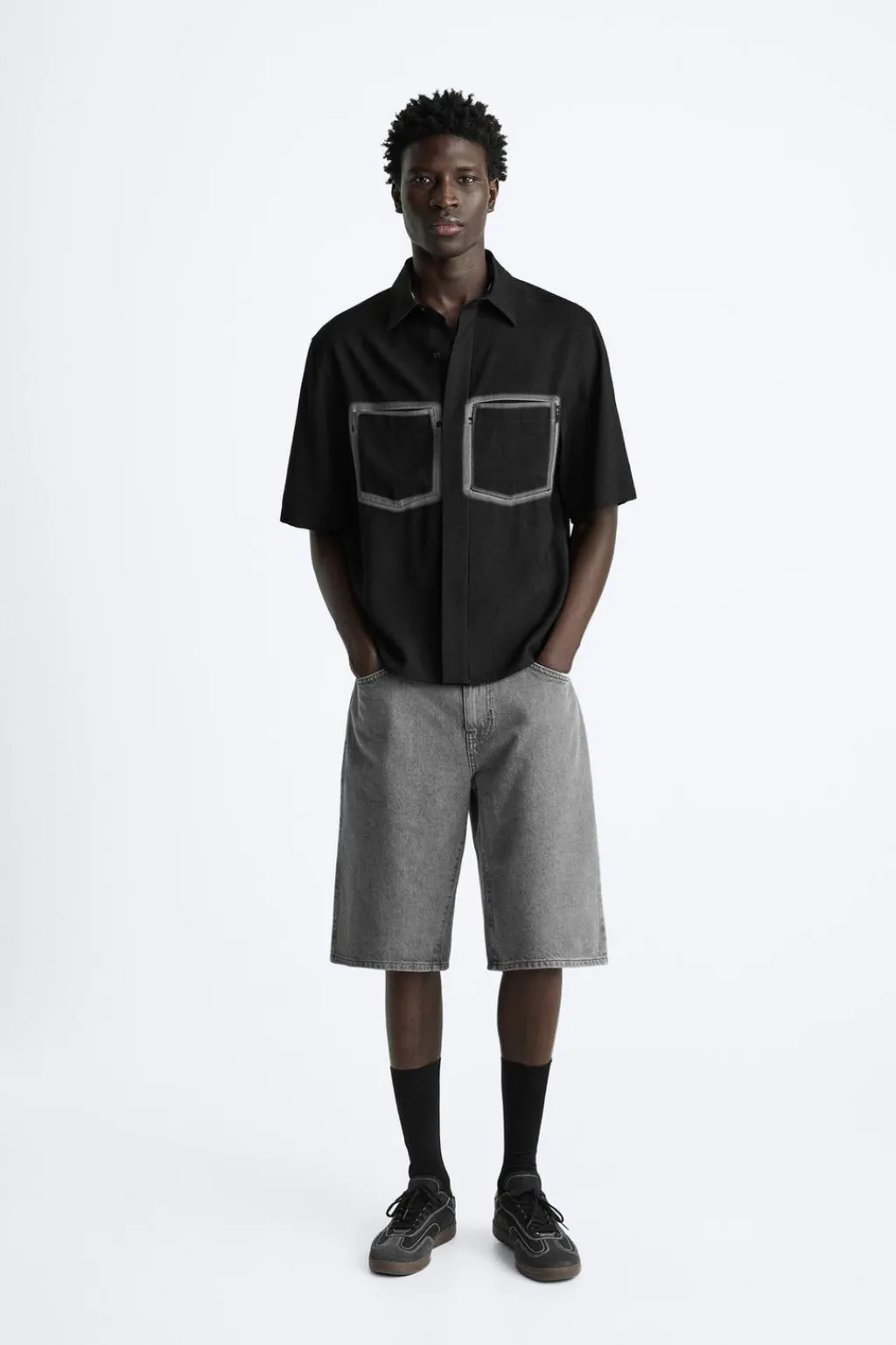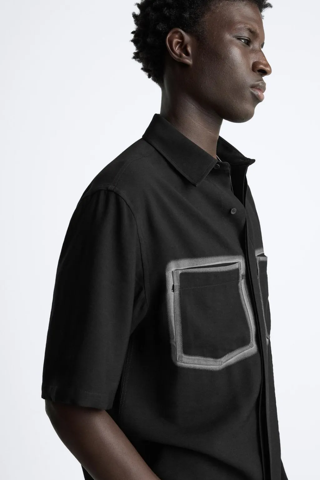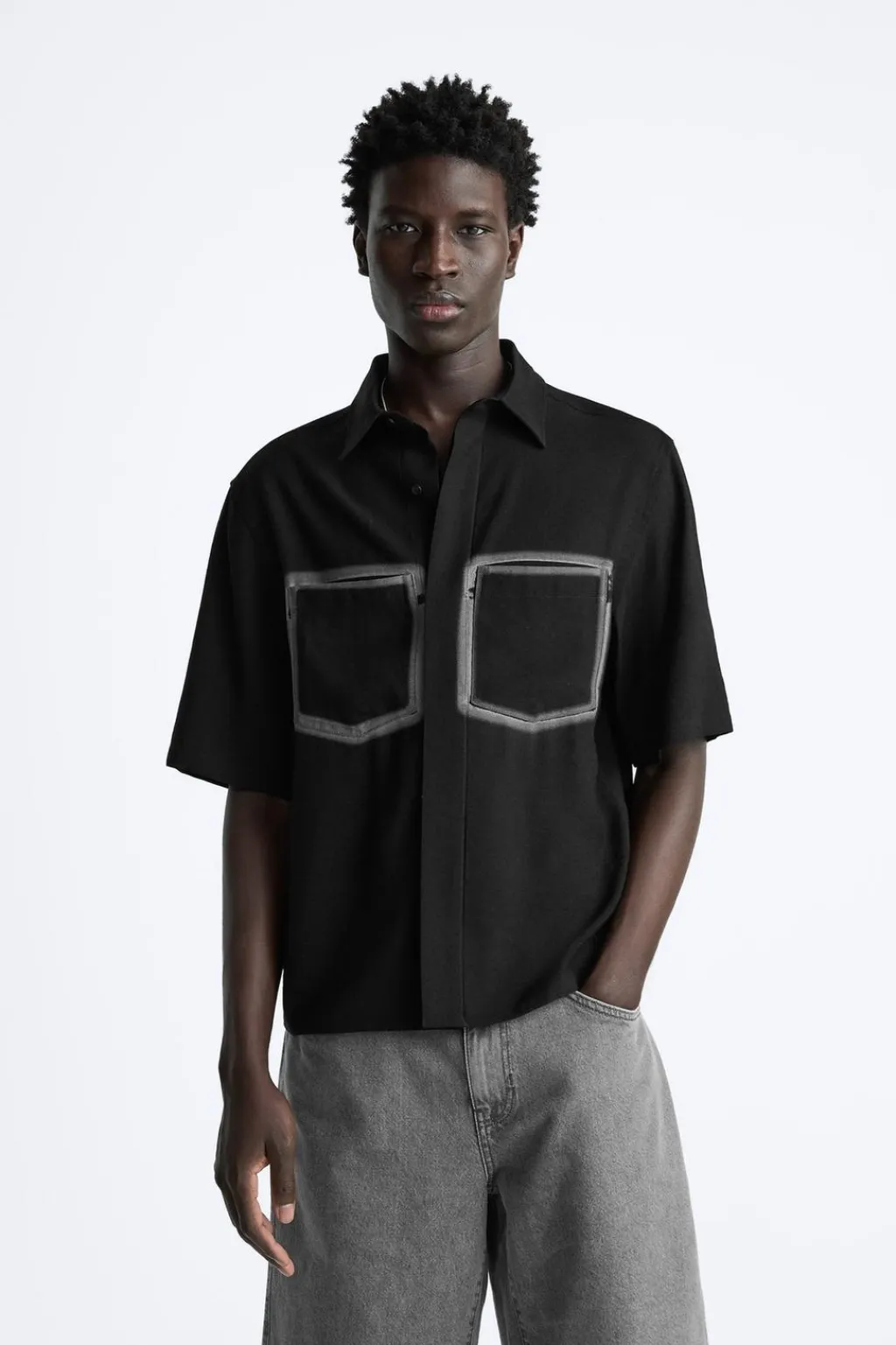 Camisa relaxed fit confeccionada en tejido fluido con mezcla de viscosa. Cuello solapa y manga corta. Bolsillos plastrón combinados a contraste en pecho. Cierre frontal de botonadura.