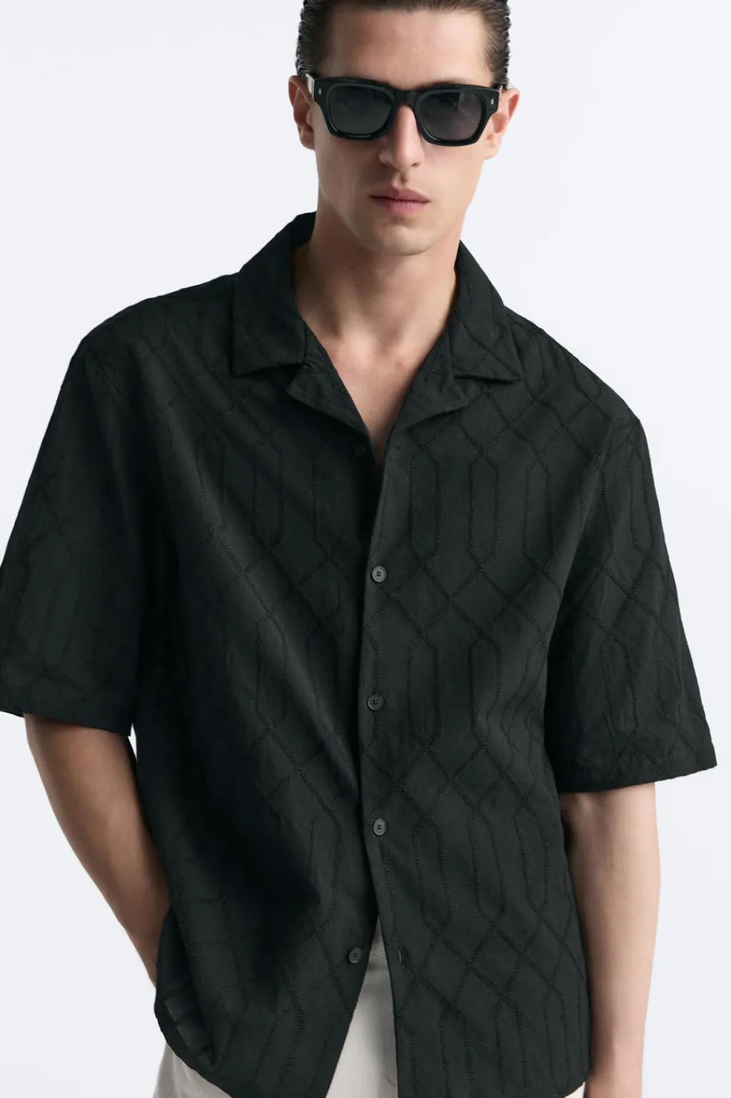 Camisa relaxed fit.Cuello bowling y manga corta. Cierre frontal de botonadura.