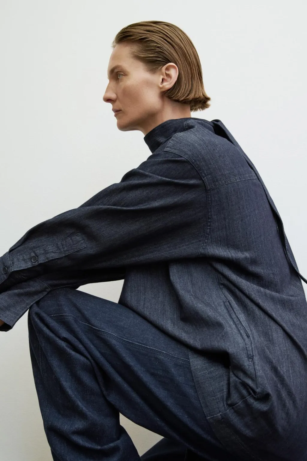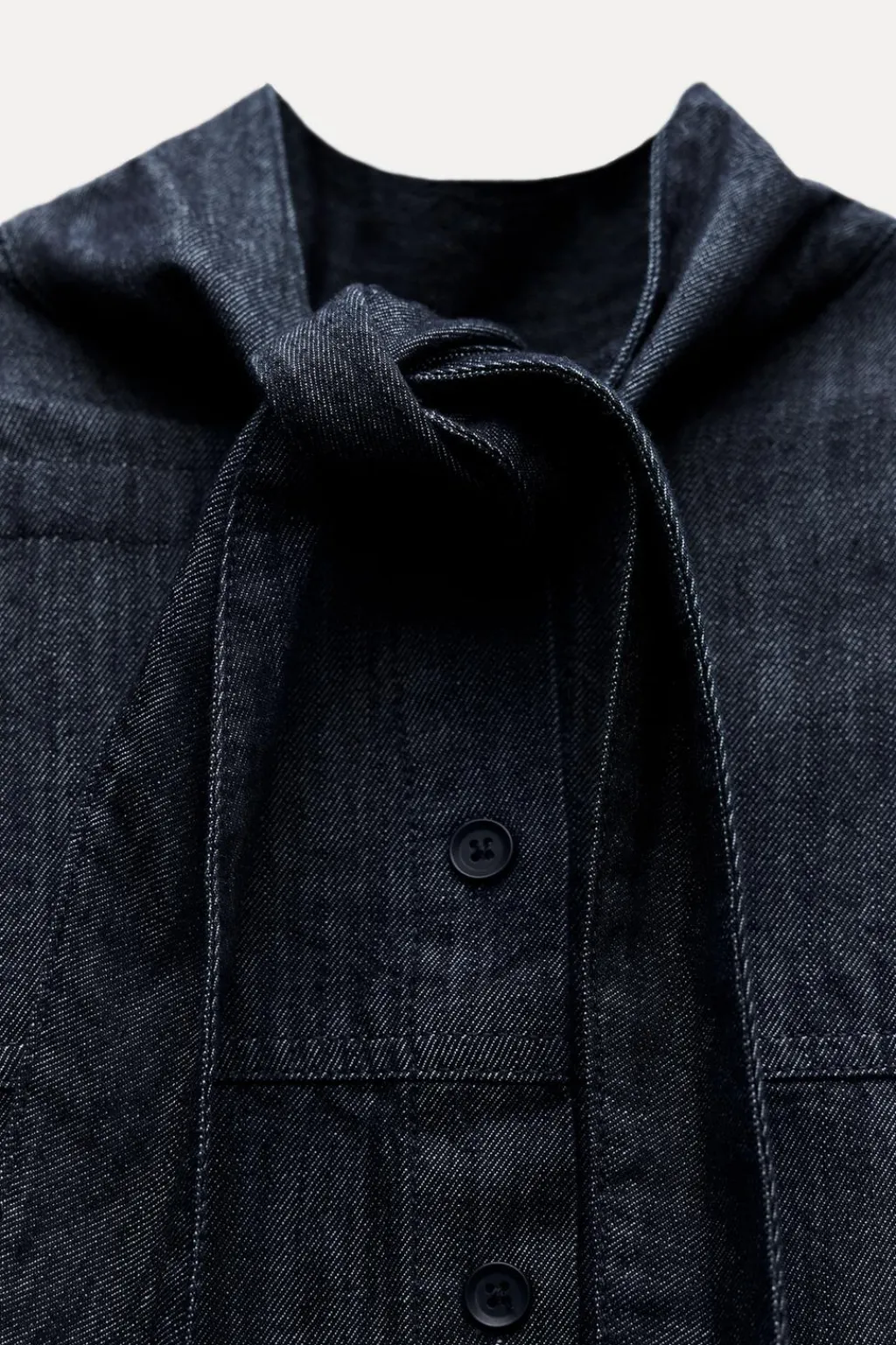 Camisa confeccionada en hilatura de algodón 100%. Cuello subido ajustable con lazada en mismo tejido. Manga larga acabada en puño. Cierre en espalda con botones a tono.