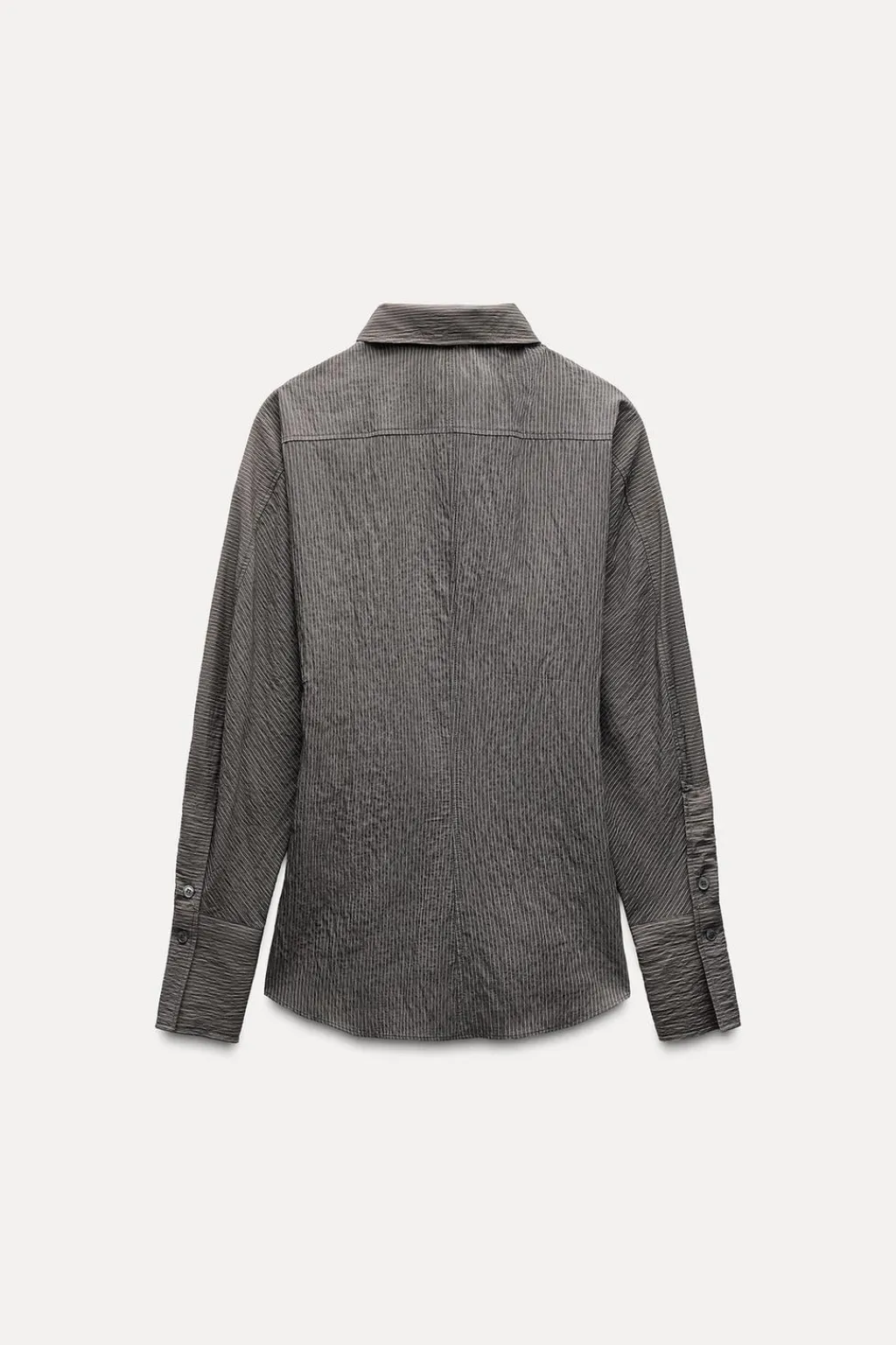 Camisa confeccionada en hilatura con mezcla de modal. Cuello solapa y manga larga acabada en puño. Bolsillo de plastrón en pecho. Bajo redondeado asimétrico. Cierre frontal con botones.