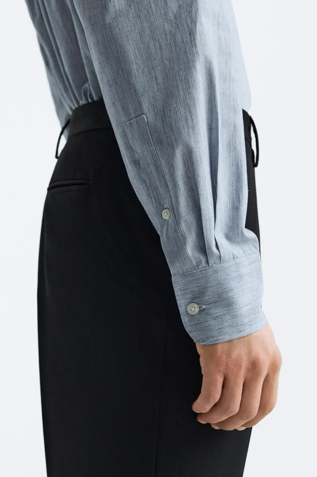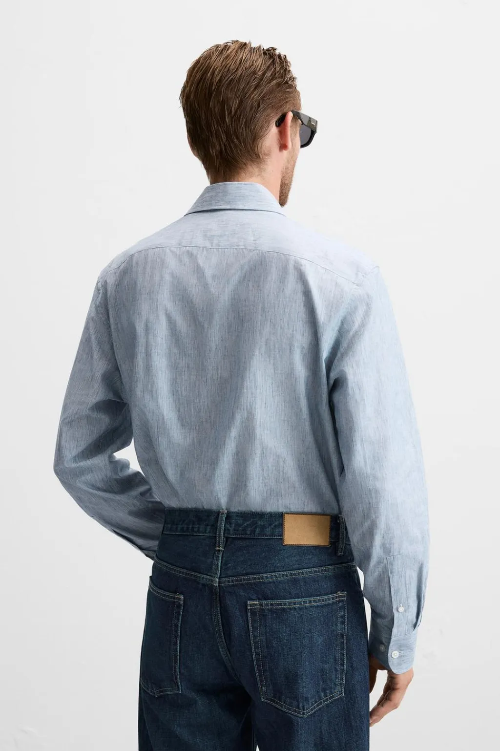 Camisa relaxed fit confeccionada en tejido con mezcla de algodón y lino con elasticidad. Cuello italiano y manga larga acaba en puño con botón. Cierre frontal de botonadura.