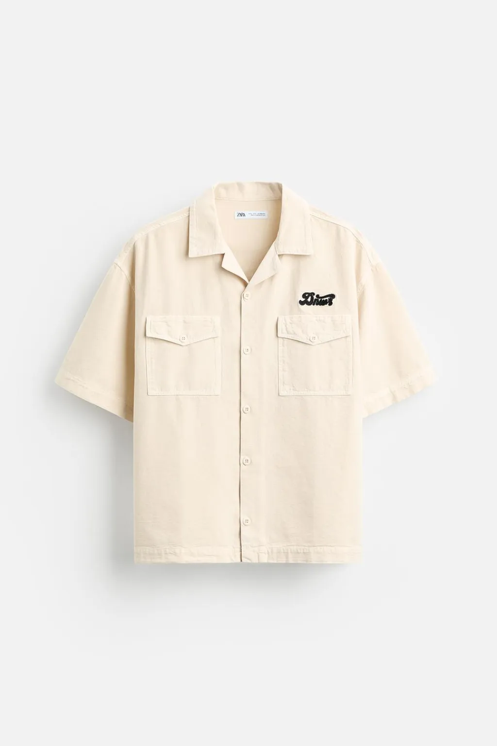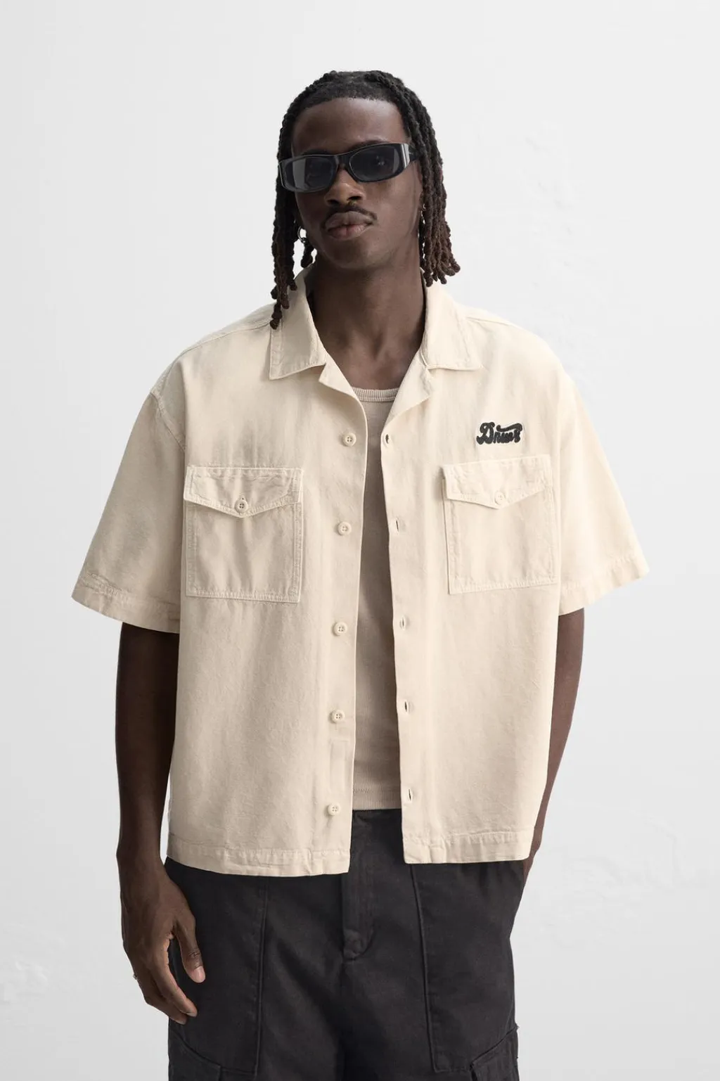 Camisa relaxed fit confeccionada en tejido de algo´don con estructura canvas. Cuello bowling y manga corta. Bolsillos de plastrón con solapa en pecho. Bordados combinados a contraste en delantero y espalda. Cierre frontal de botonadura.