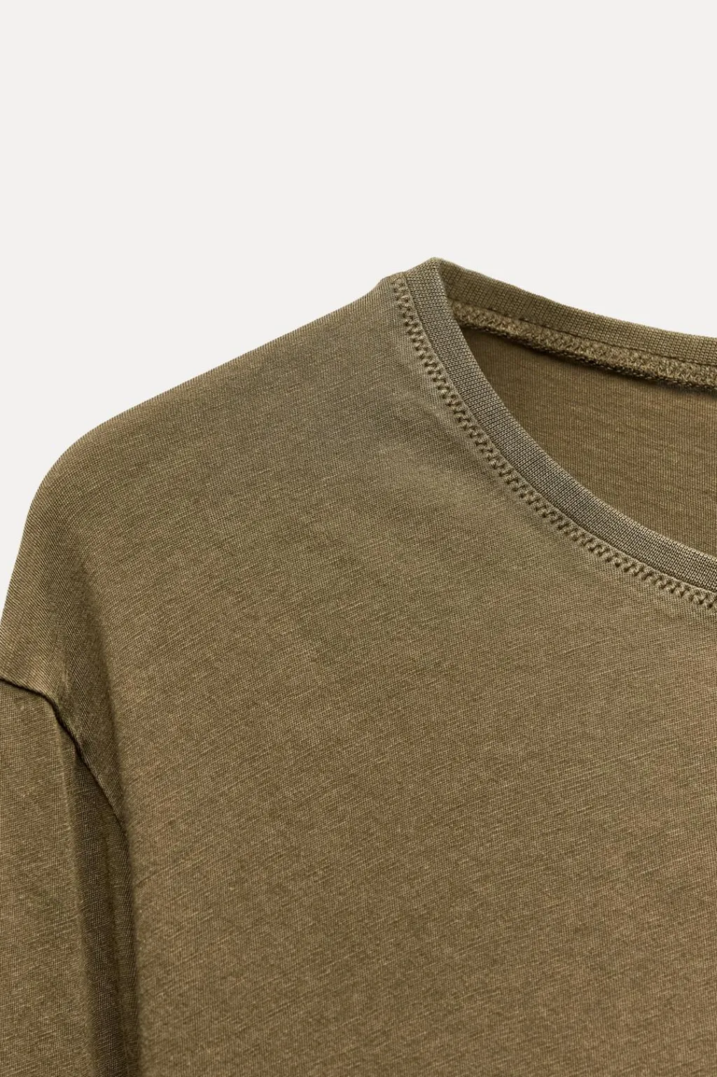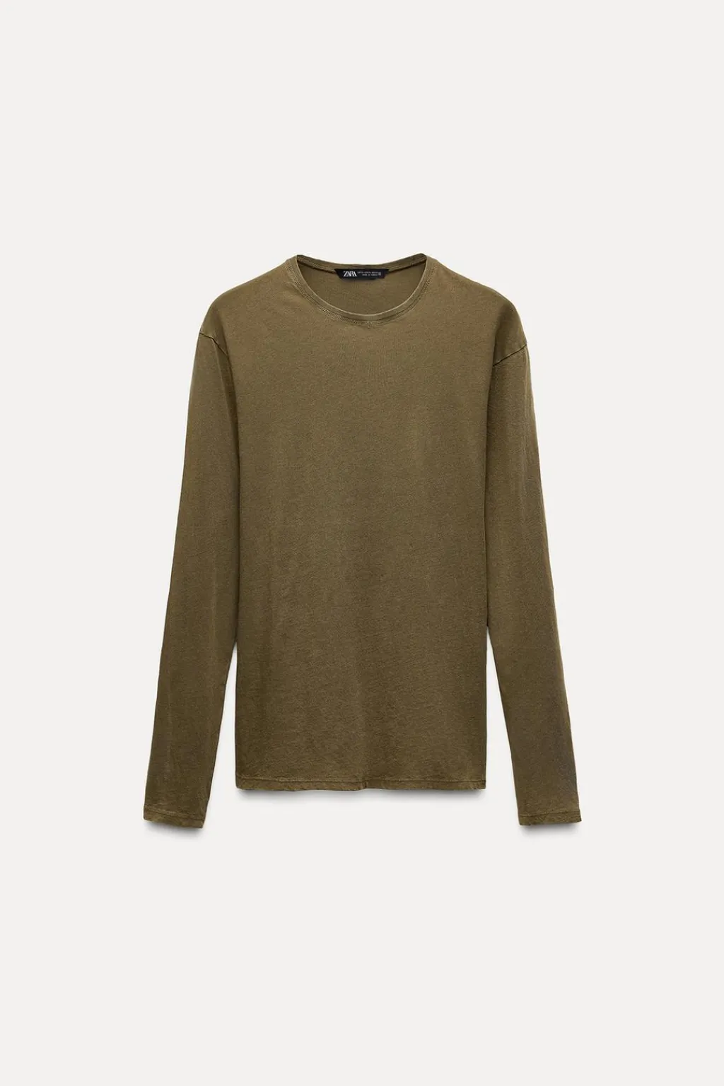 Camiseta fluida confeccionada en hilatura de algodón 100%. Cuello redondo y manga larga.