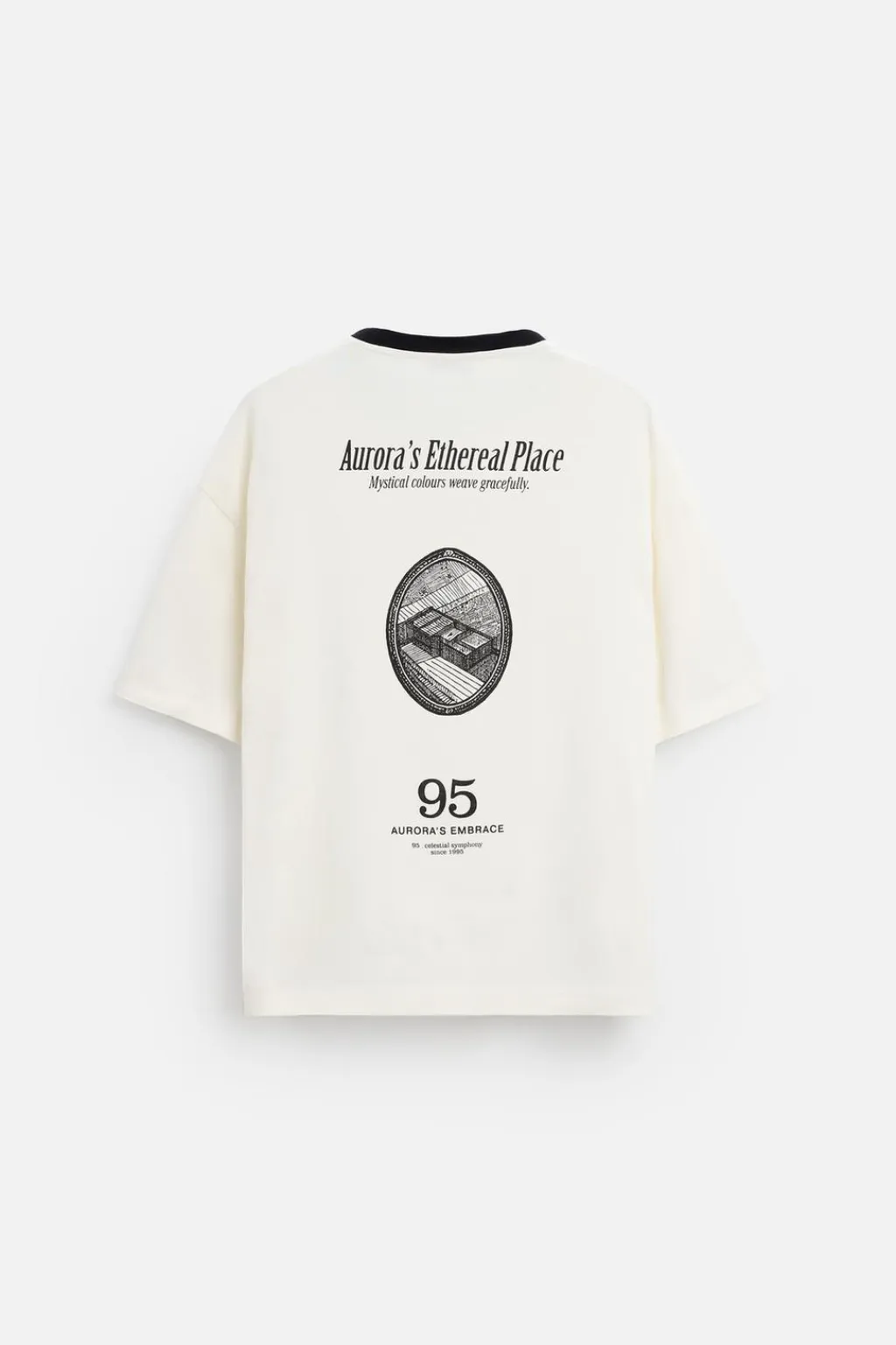 Camiseta relaxed fit. Cuello redondo y manga corta. Estampaciones combinadas a contraste en delantero y espalda.