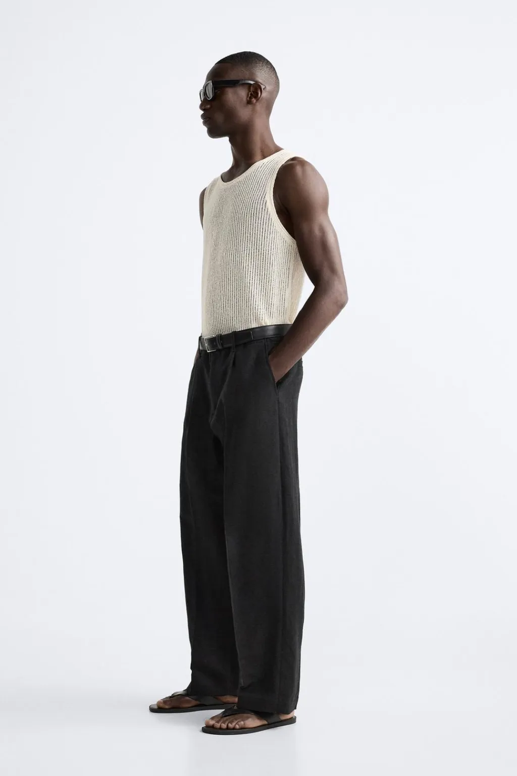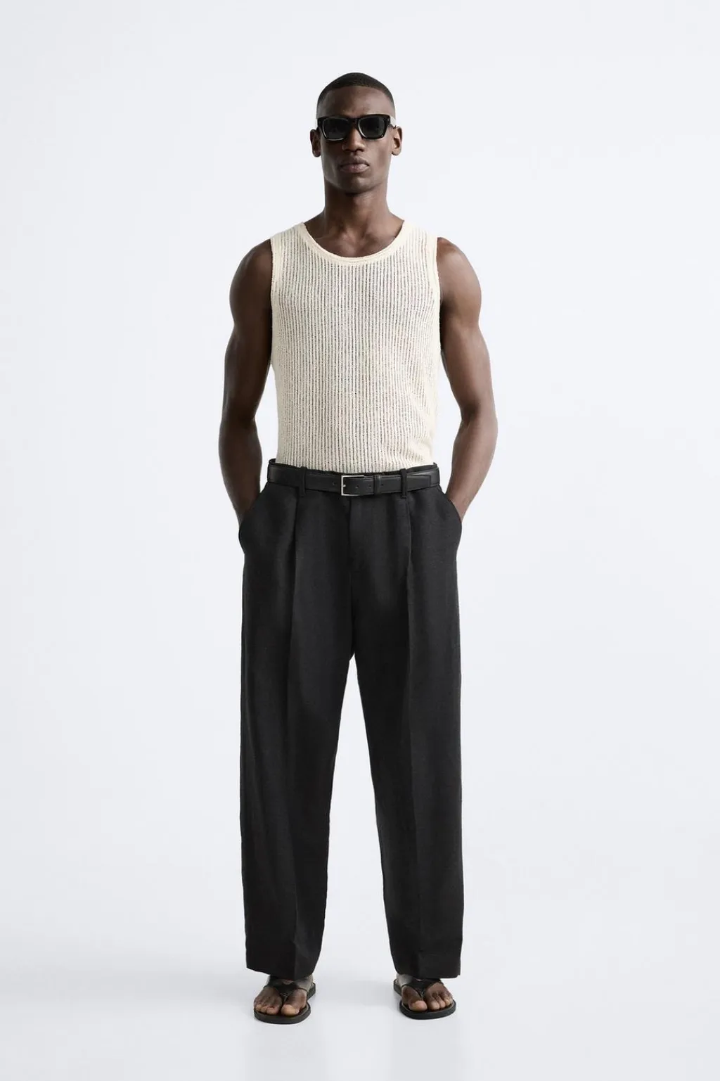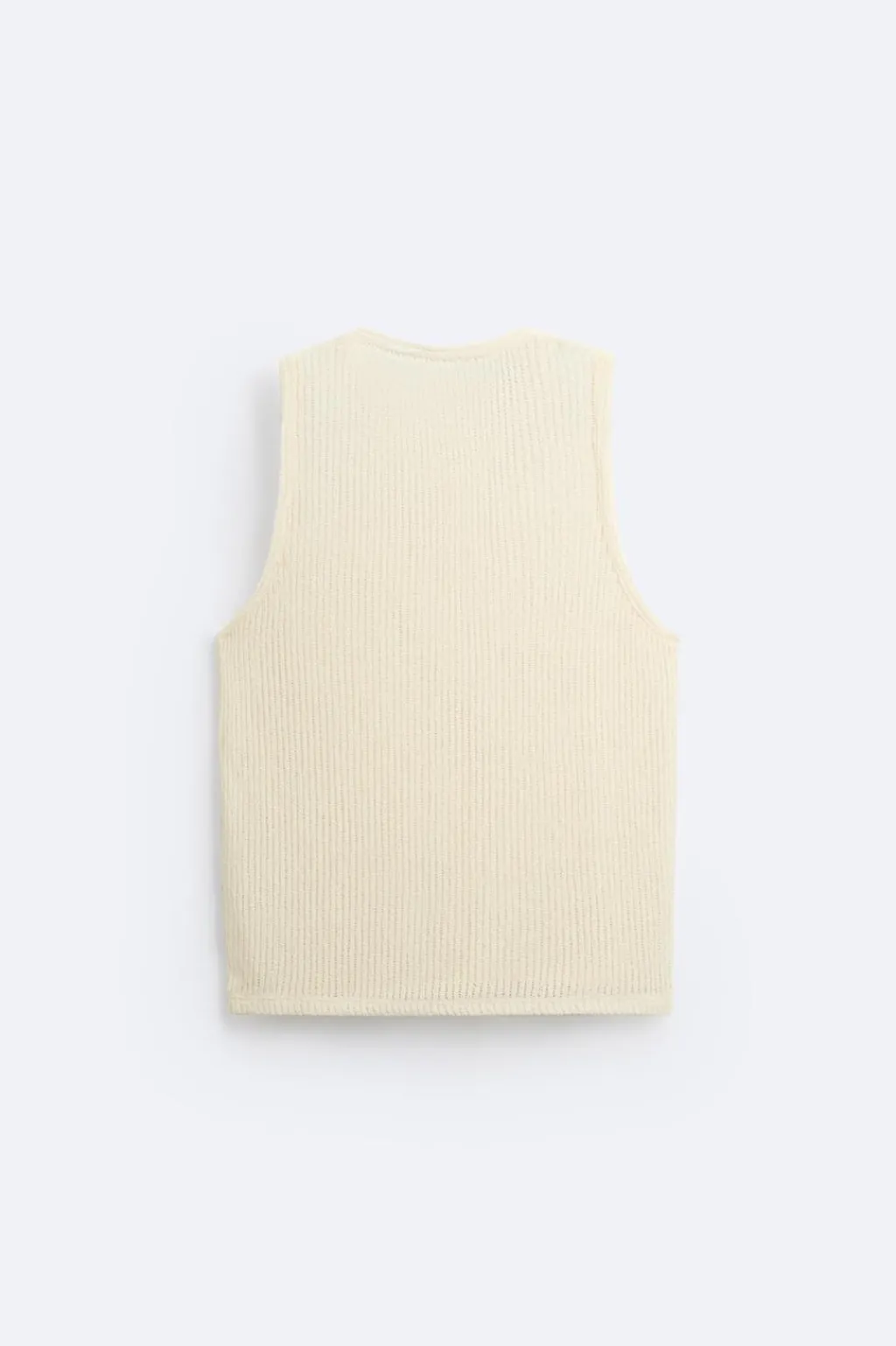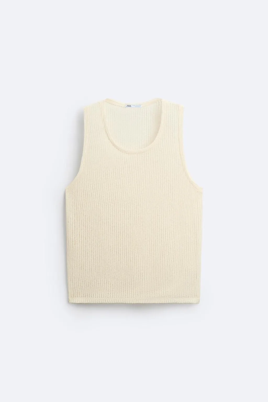 Camiseta relaxed fit confeccionada en tejido con estructura abierta. Cuello amplio y manga sisa.