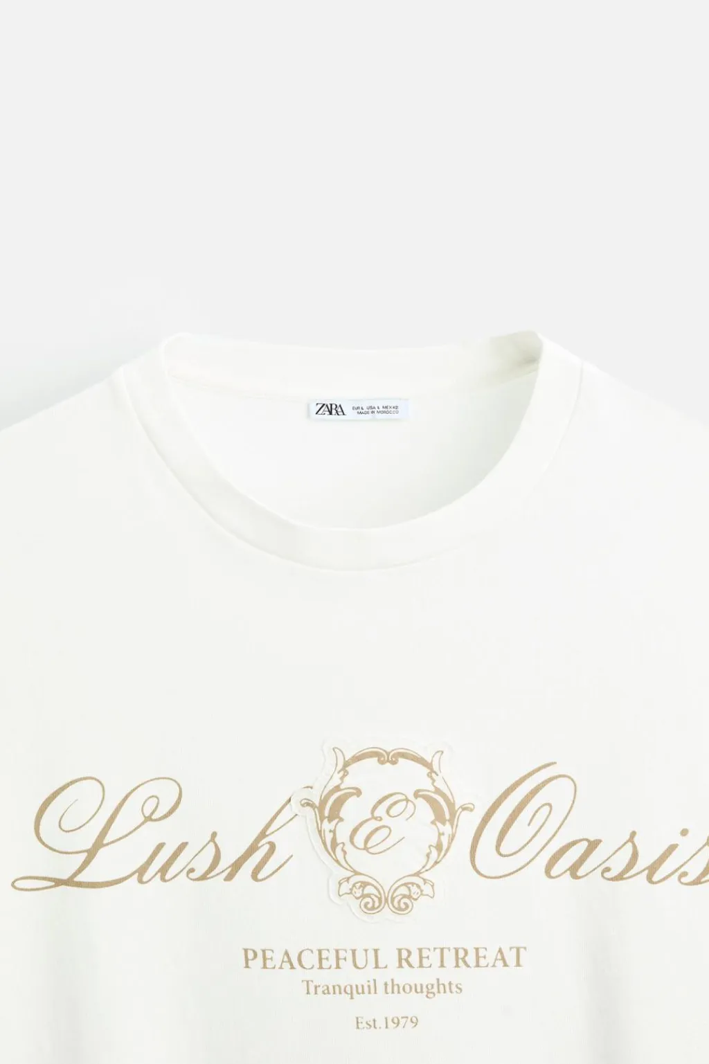 Camiseta relaxed fit con cuello redondo y manga corta. Parche y estampado combinados a contraste en delantero.