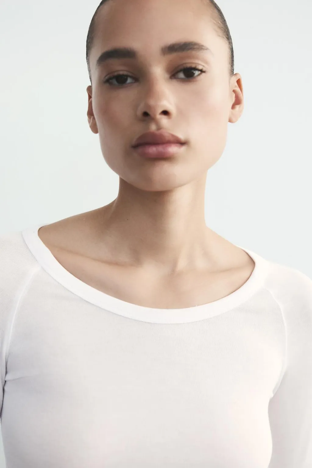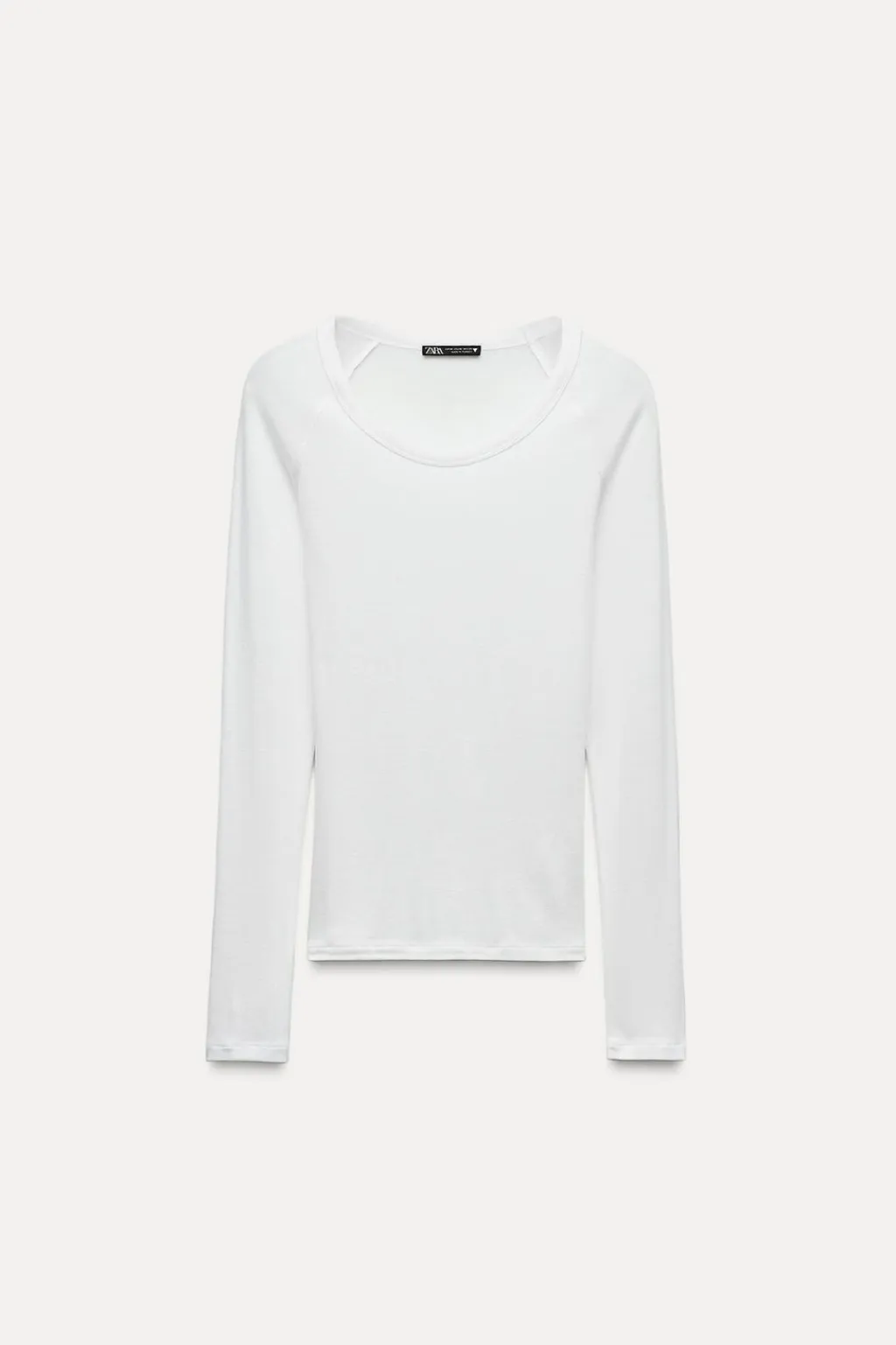 Camiseta confeccionada con viscosa. Cuello redondo y manga larga.