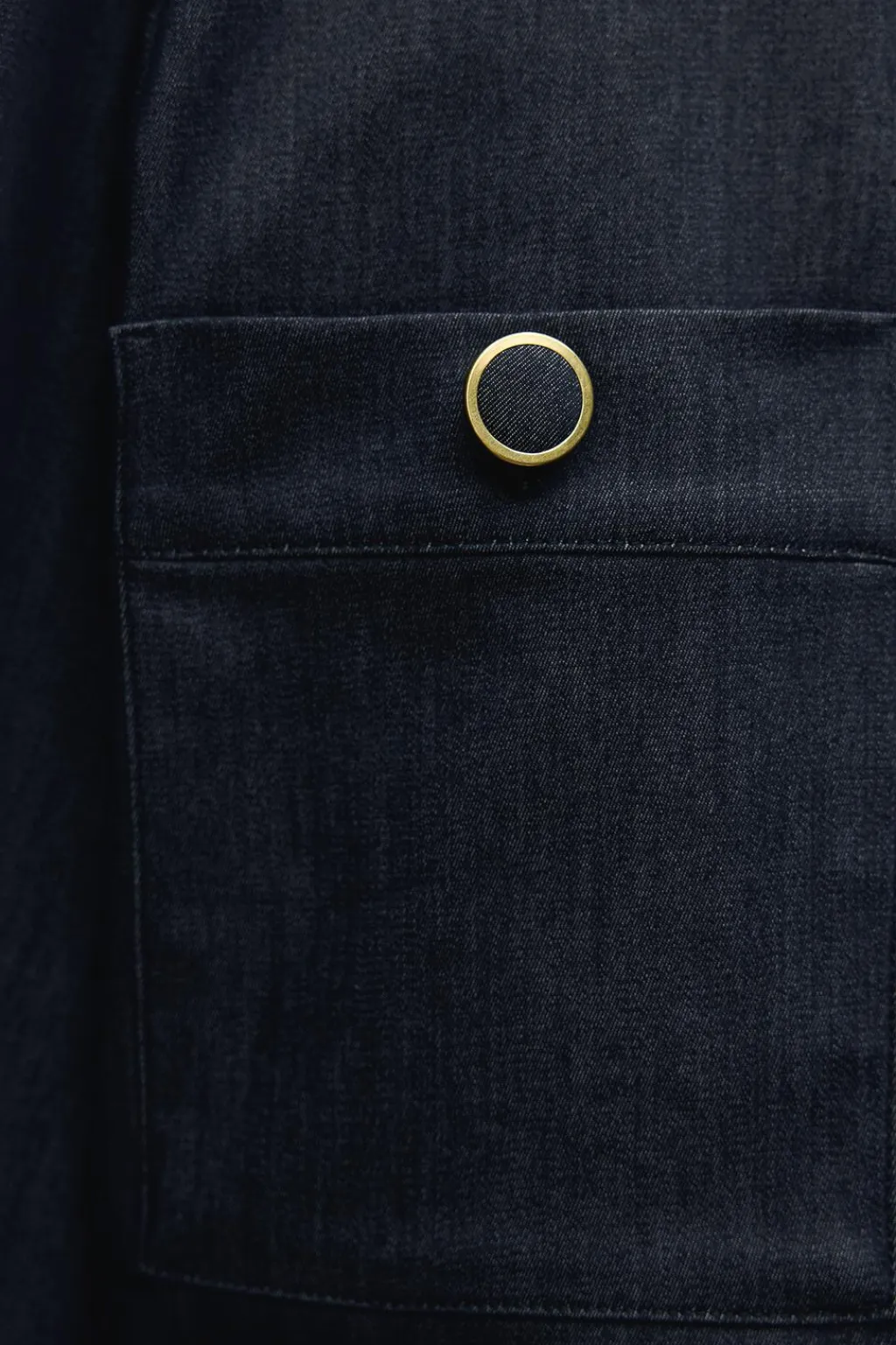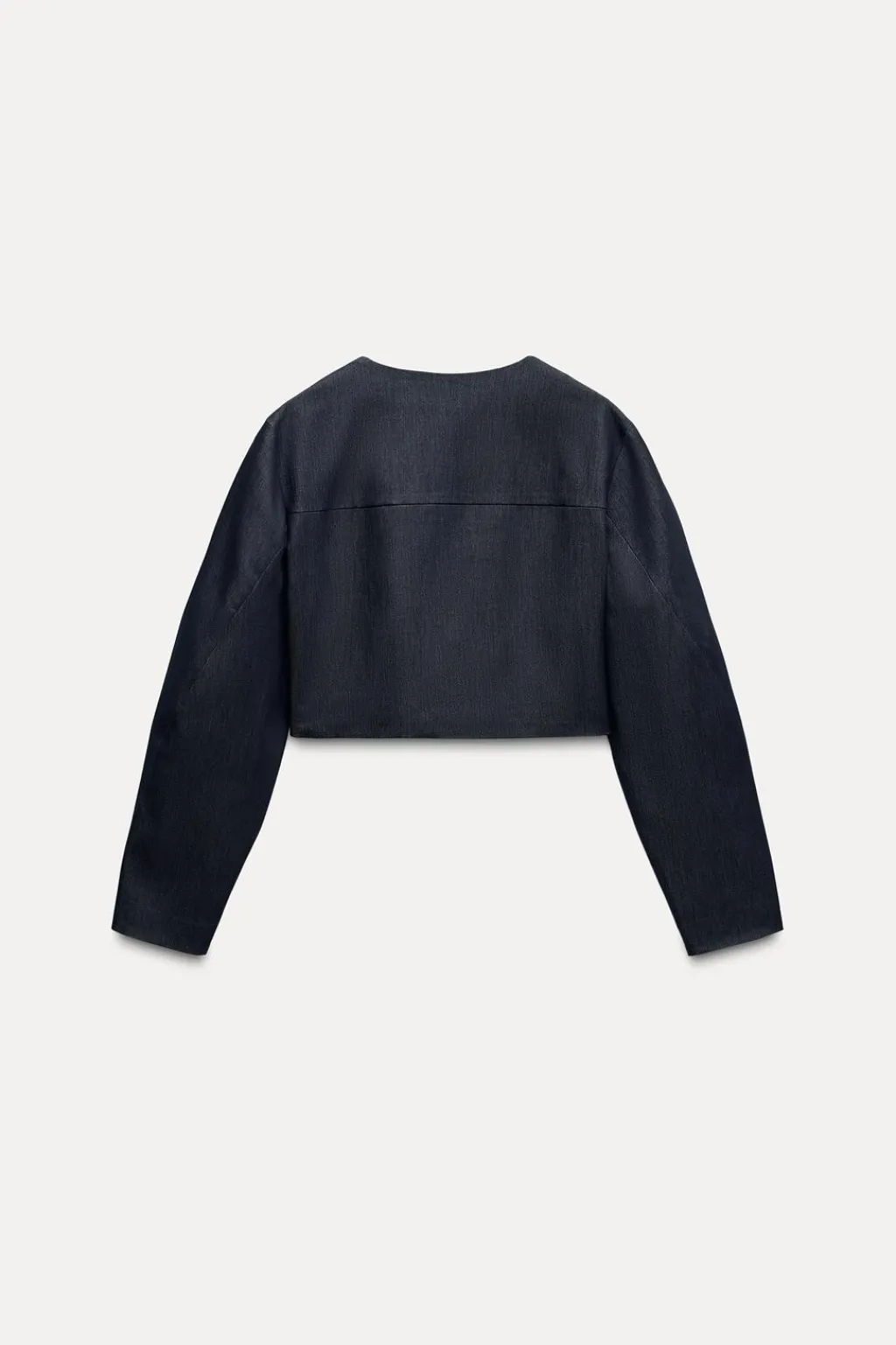 Cazadora crop de cuello redondo y manga larga. Bolsillos de plastrón en delantero. Forro interior combinado. Cierre frontal con botones.