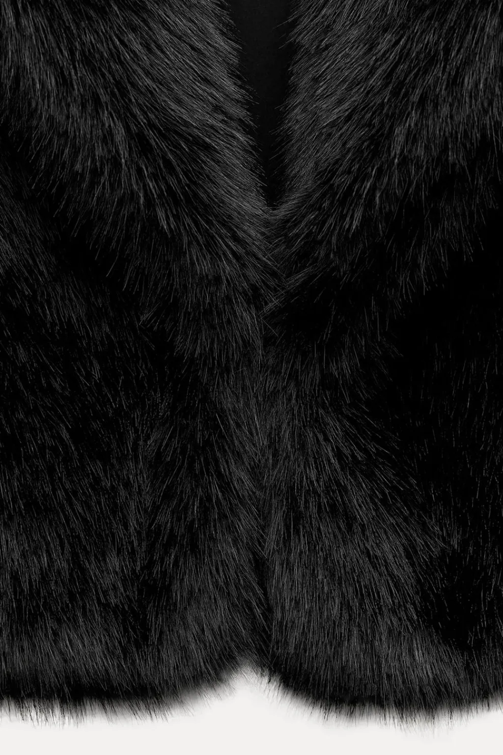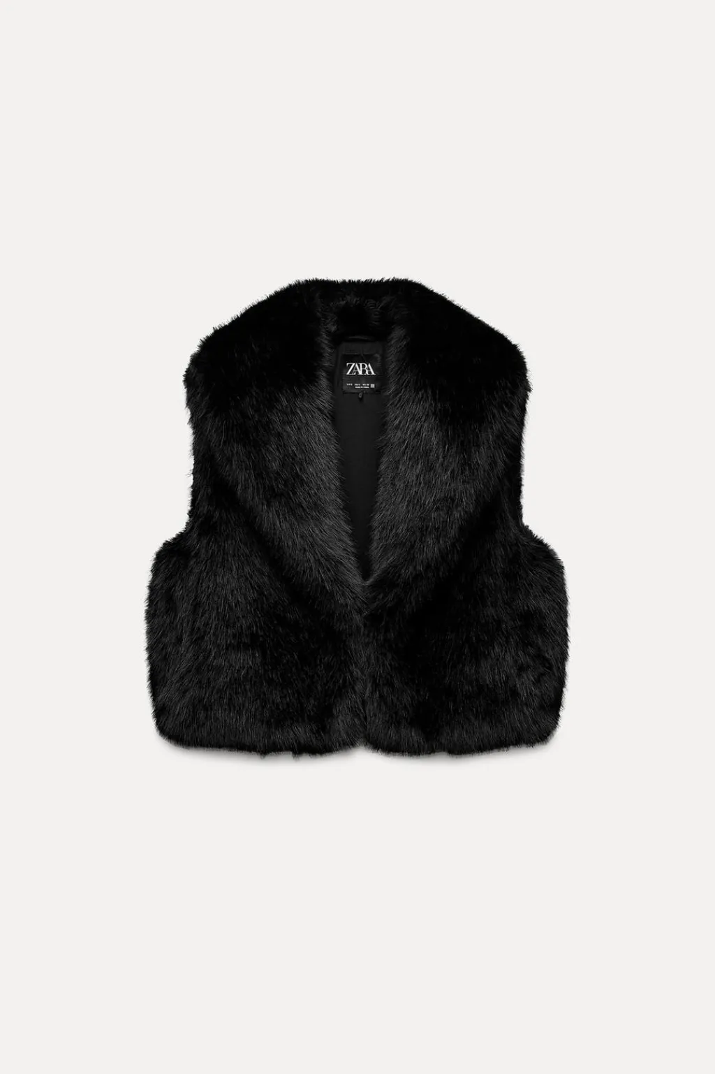 Chaleco de cuello con solapa amplia y manga sisa. Bolsillos laterales ocultos. Cierre frontal con corchete oculto.