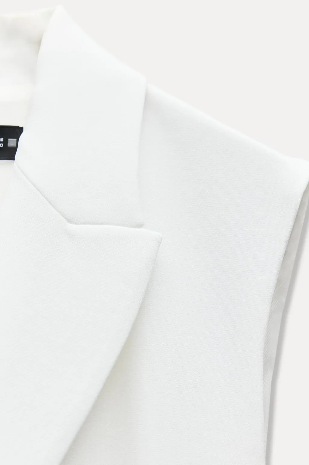 Chaleco de cuello solapa y manga sisa. Bolsillos delanteros de vivo. Cierre frontal cruzado con botones y cinturón del mismo tejido.