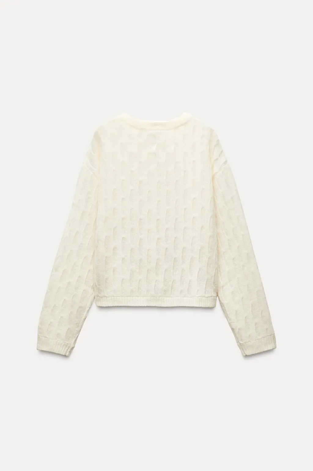 Chaqueta confeccionada con lana. Cuello redondo y manga larga. Detalle de tejido con formas de ondas. Cierre frontal con botones. Acabados en rib.