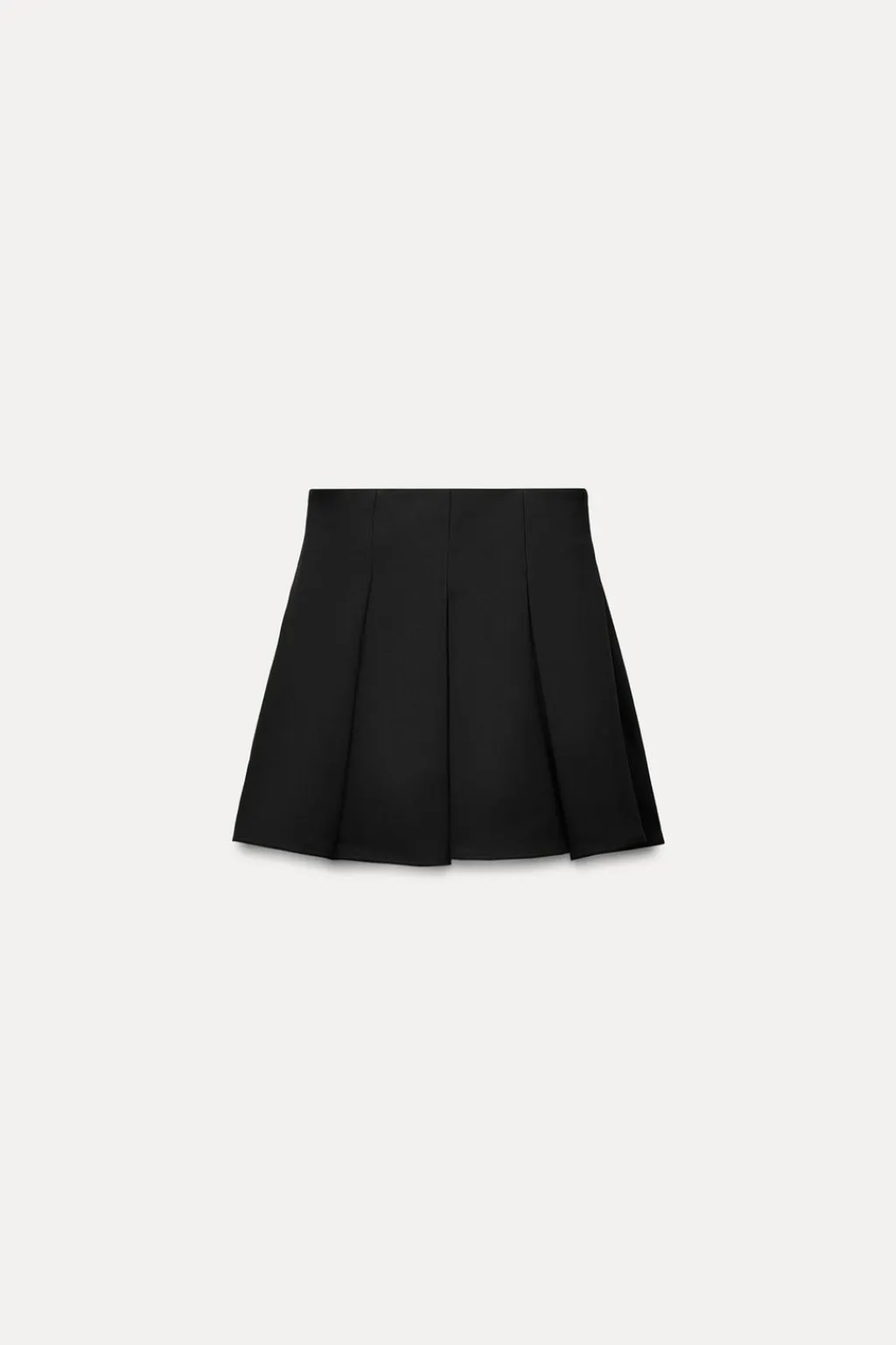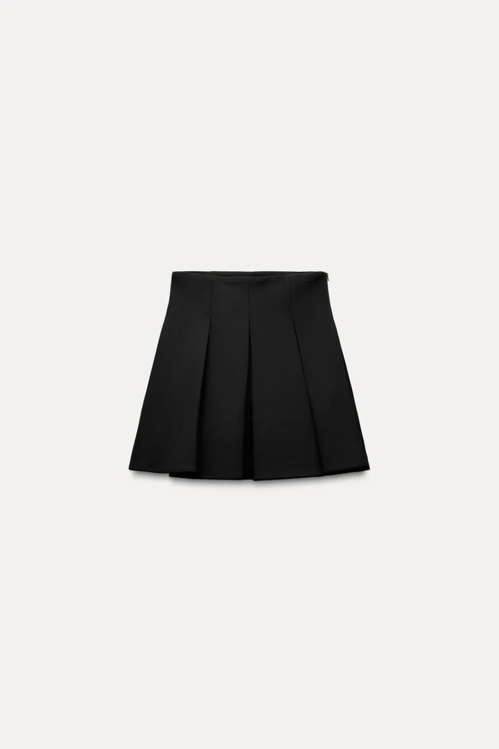 Falda mini d etiro alto. Bajo acabado en godets. Cierre lateral con cremallera oculta en costura.
