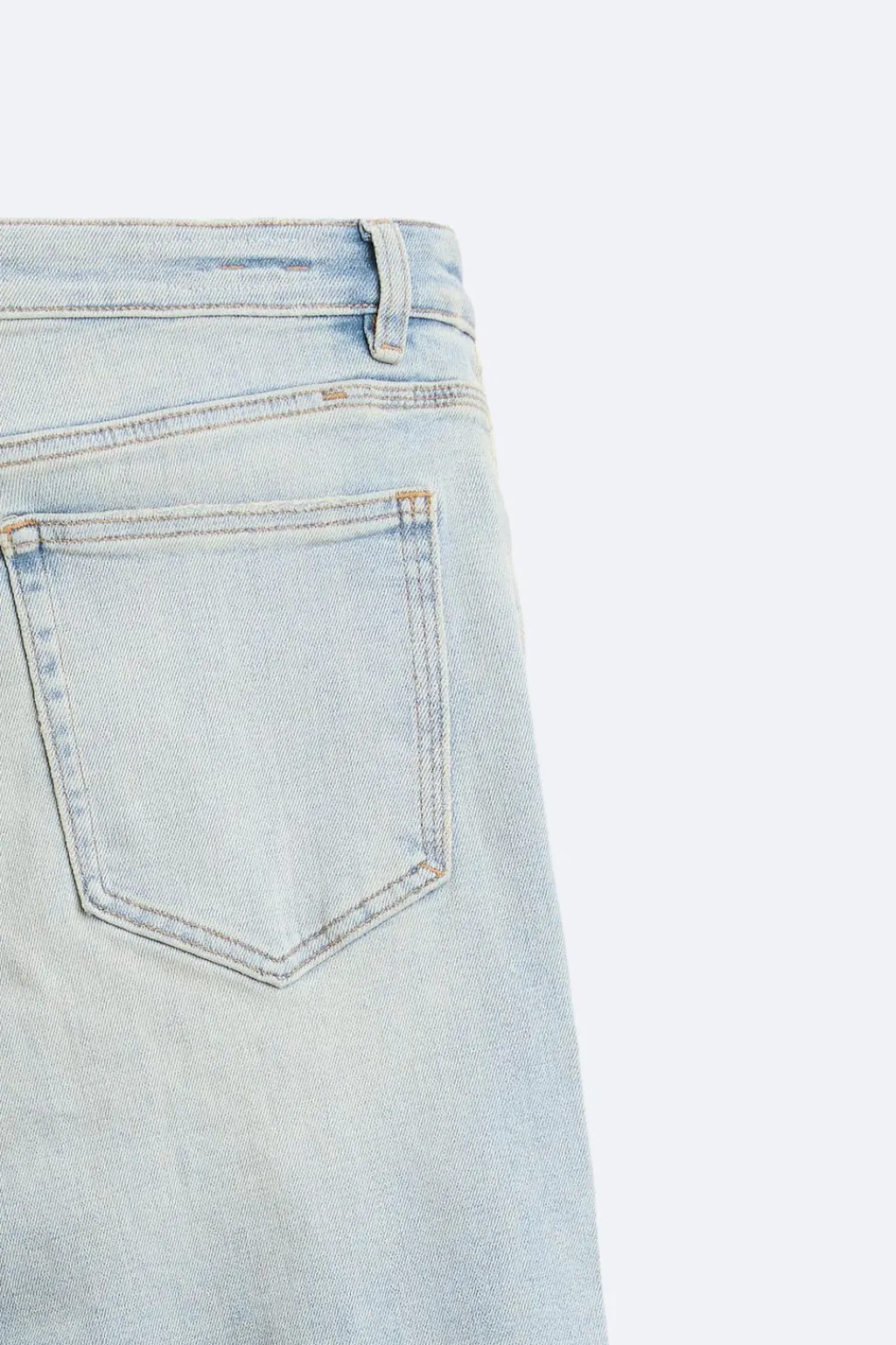 Jeans skinny fit. Cinco bolsillos. Lavado efecto rotos en toda la prenda. Cierre frontal con botones.