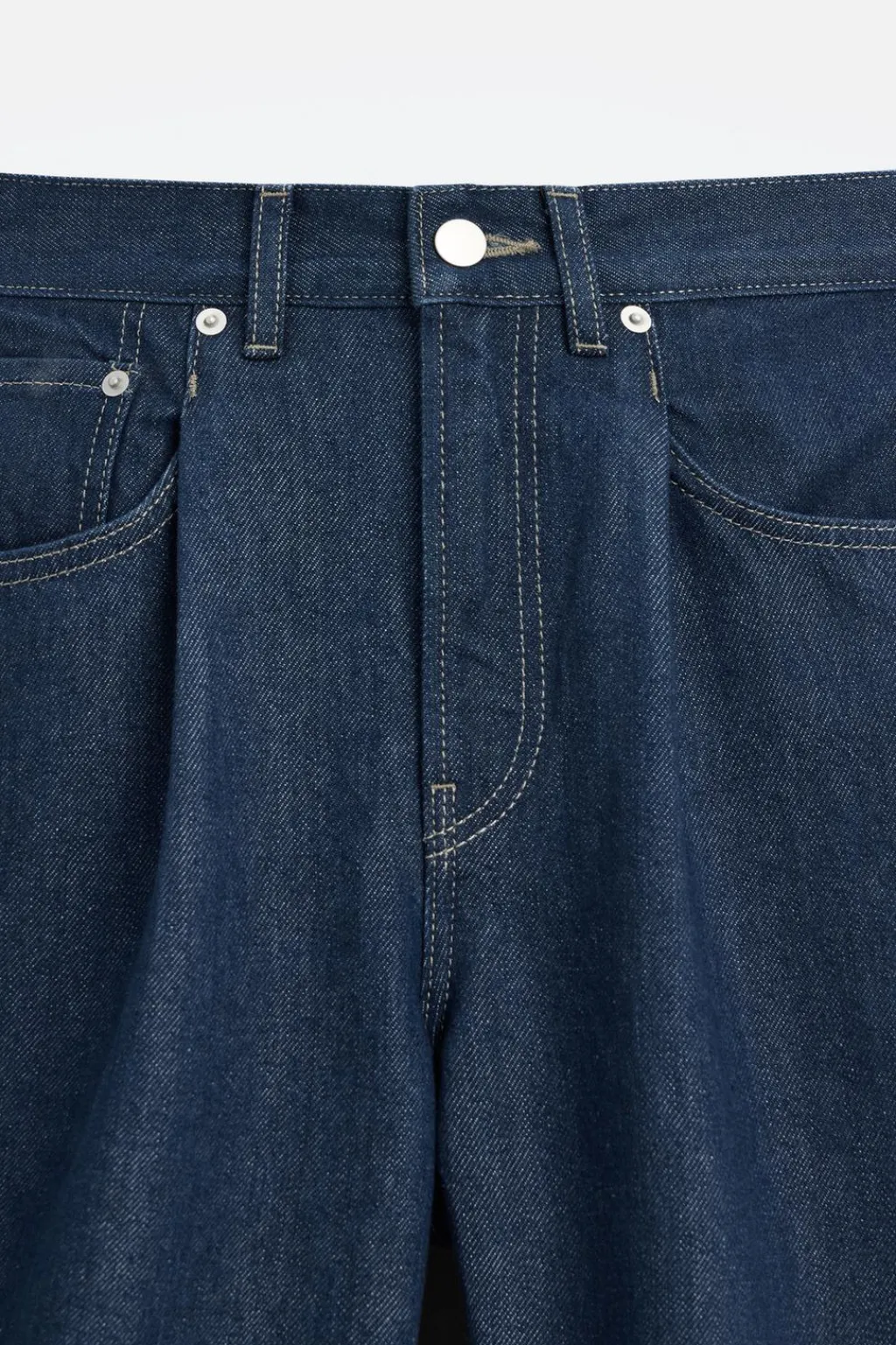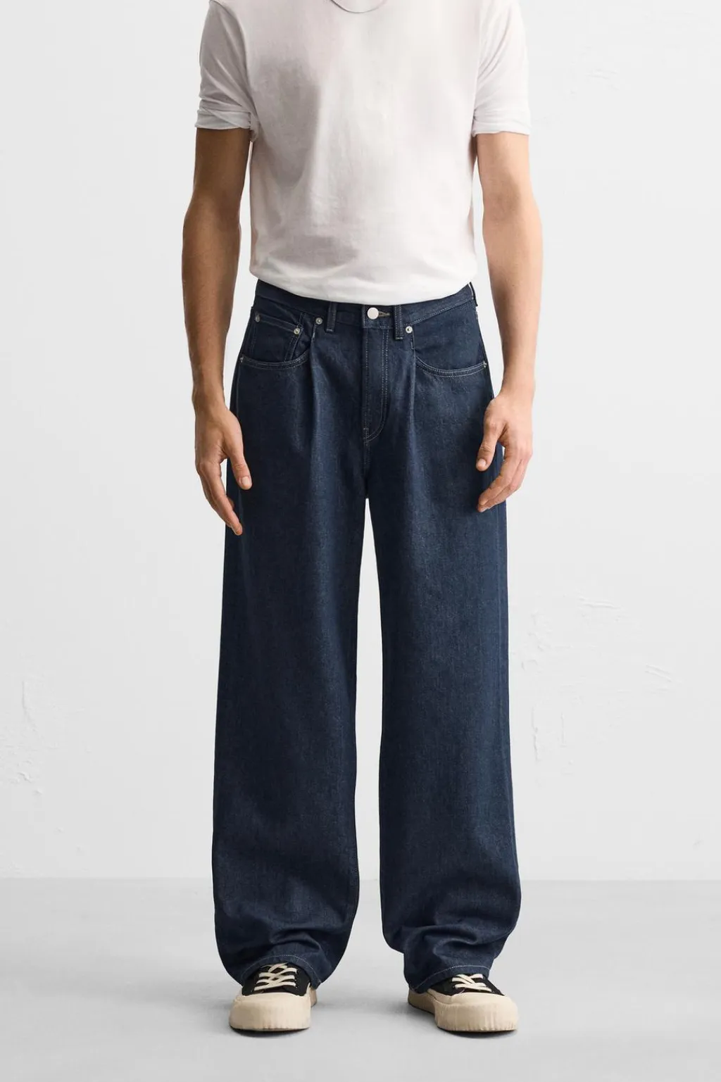 Jeans straight fit. Cintura con detalle de pliegues en delantero. Cinco bolsillos. Efecto lavado. Cierre frontal con cremallera y botón.