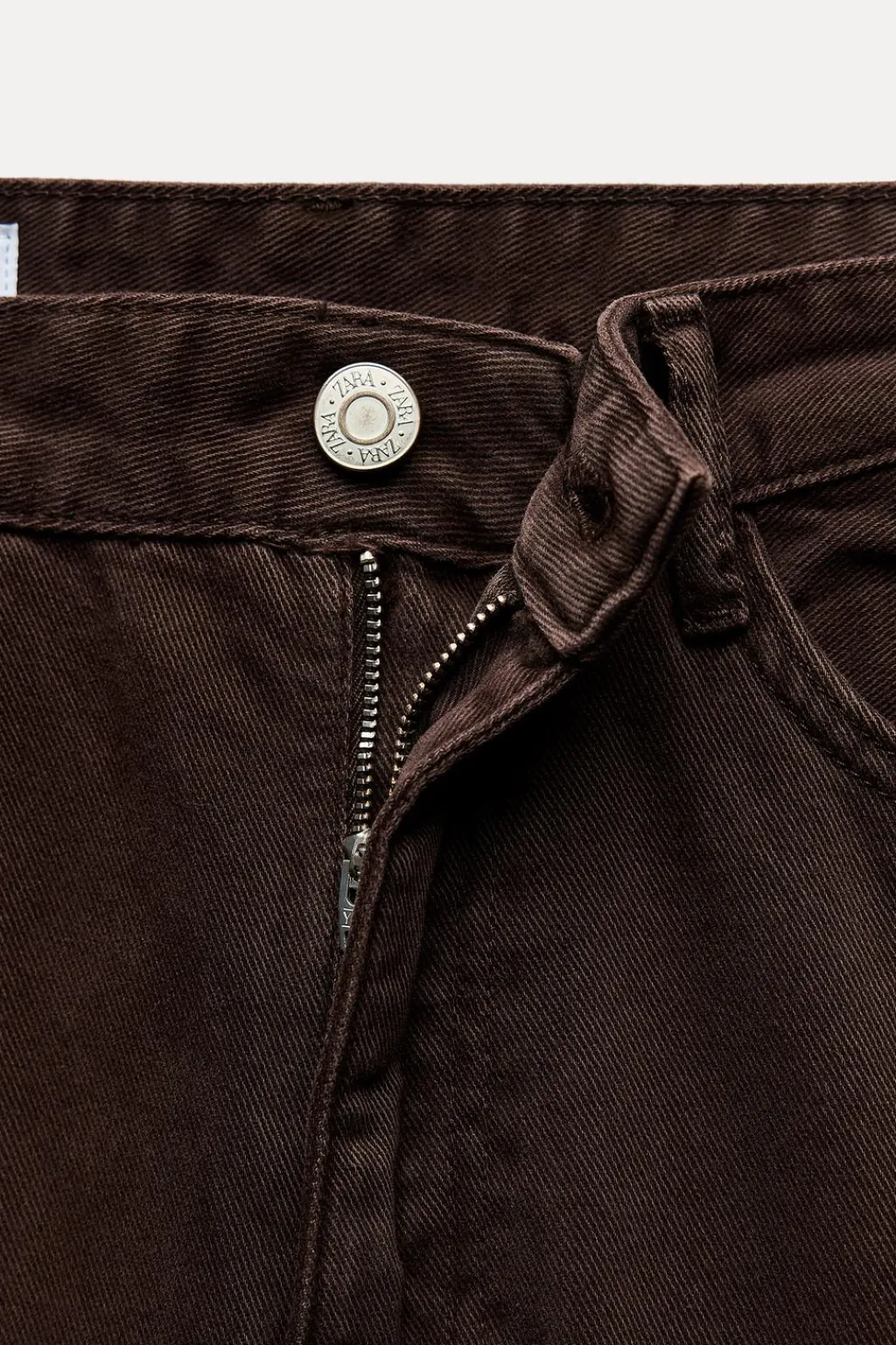 Jeans de tiro medio con trabillas y cinco bolsillos. Cierre frontal con cremallera y botón.