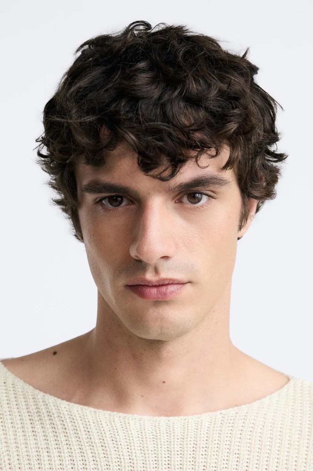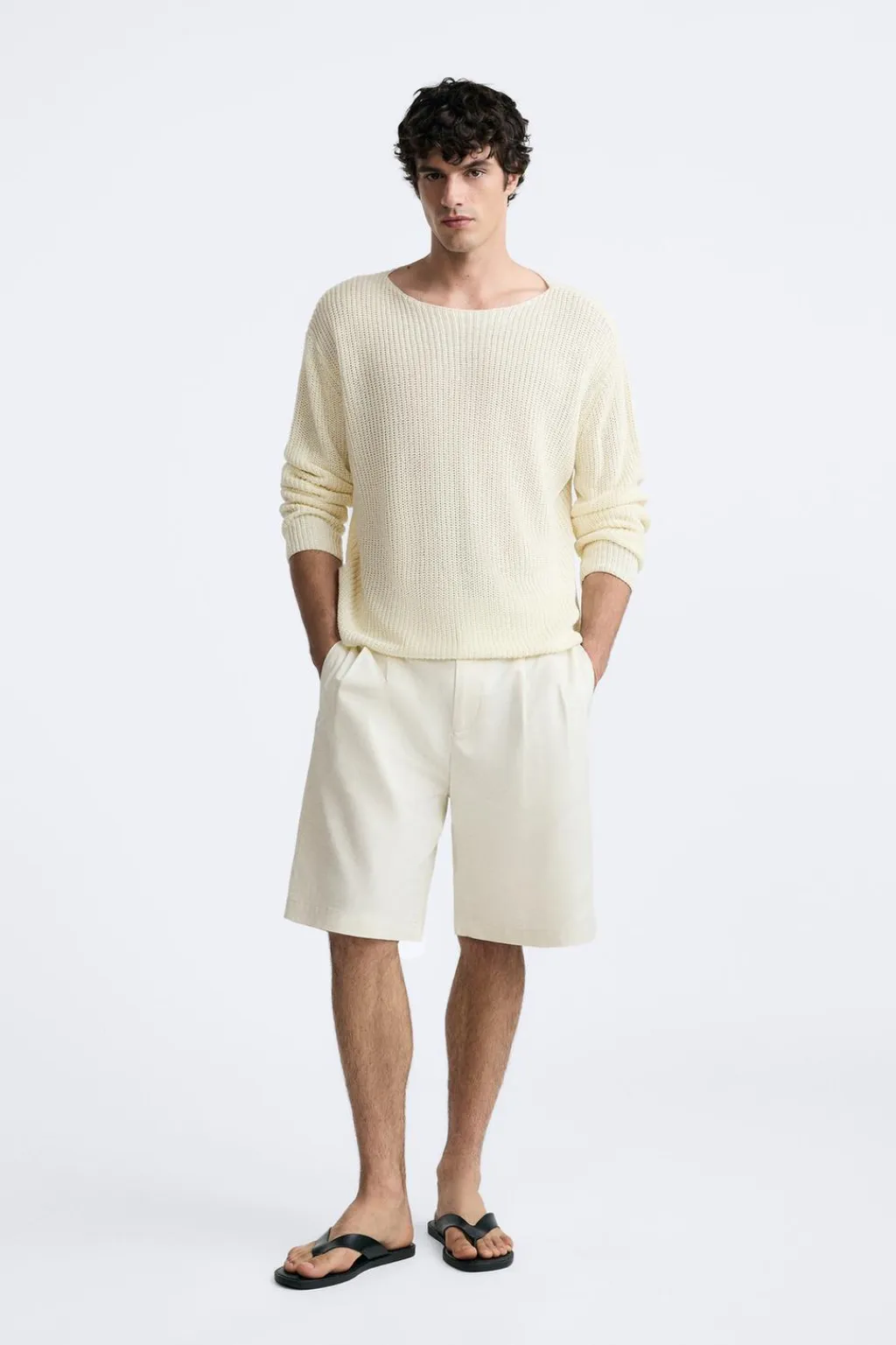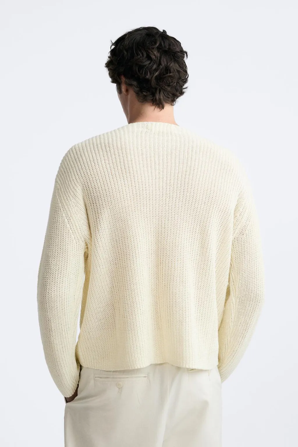 Jersey boxy fit tejido en hilatura de lino. Cuello barco y manga larga.