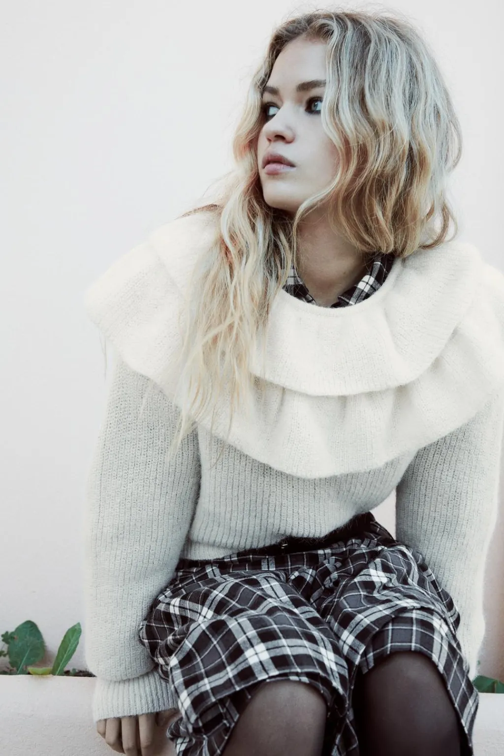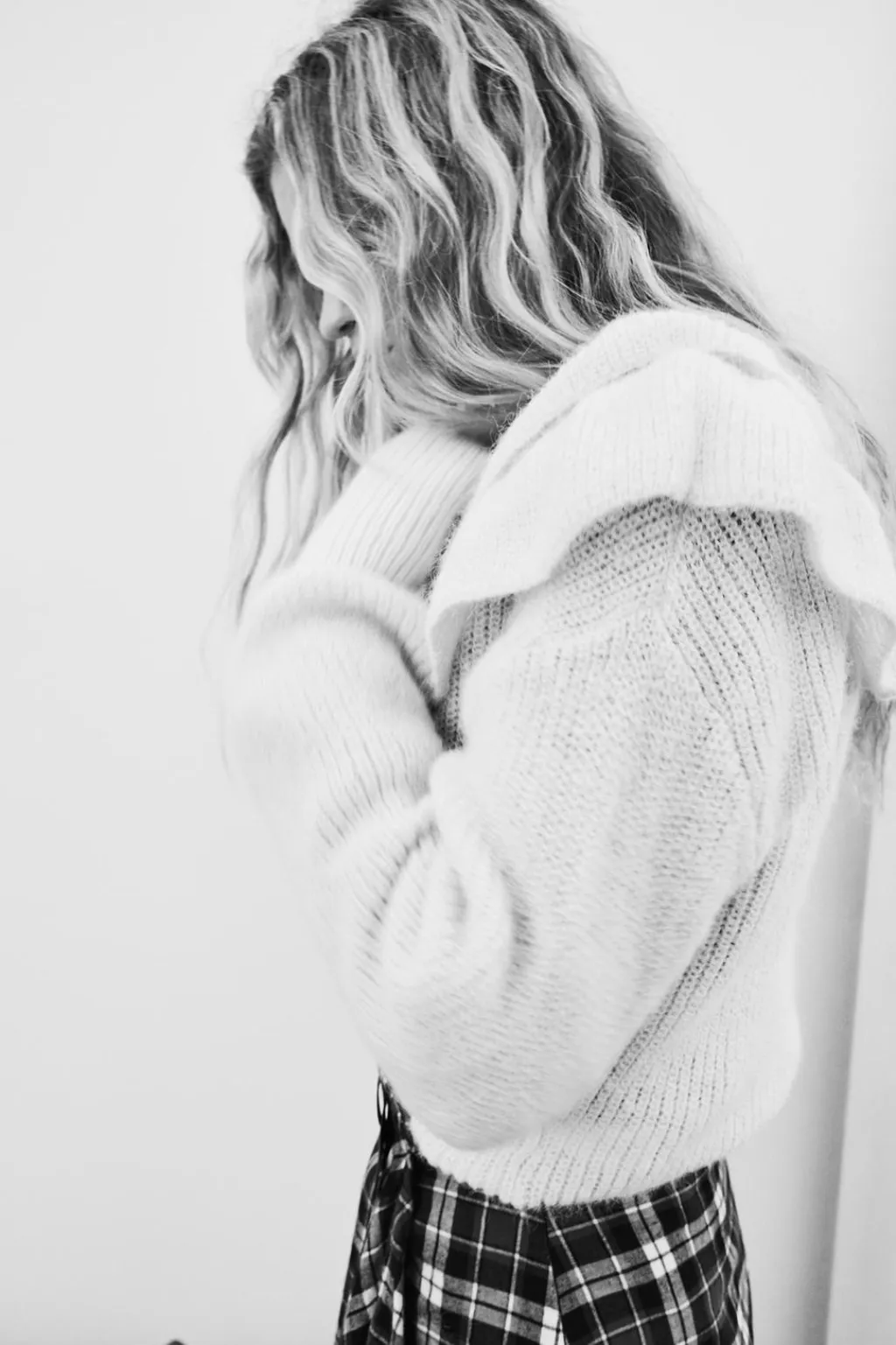 Jersey de cuello redondo con volantes y manga larga acabada en puño.