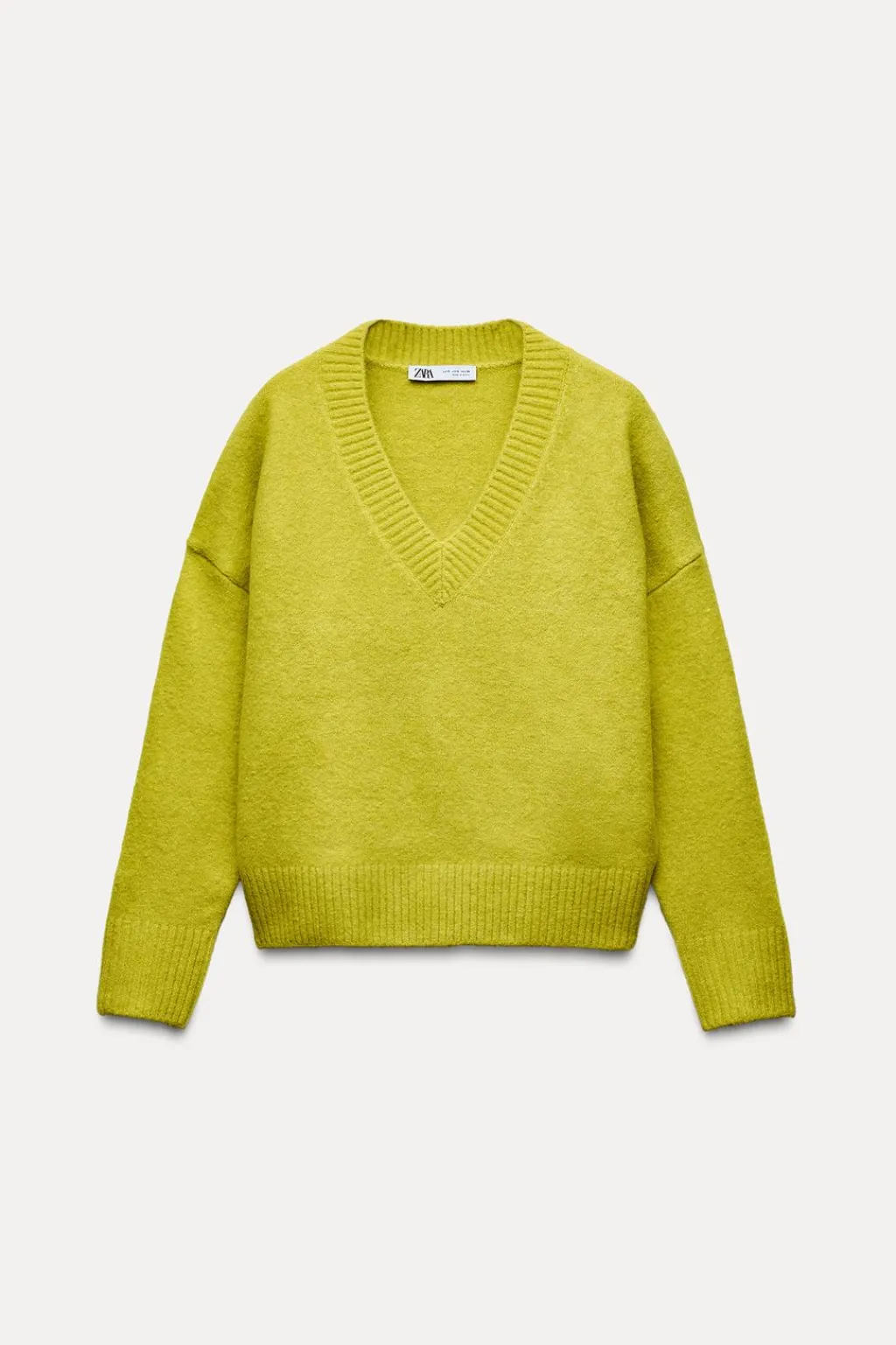 Jersey de escote pico y manga larga. Acabados en rib.