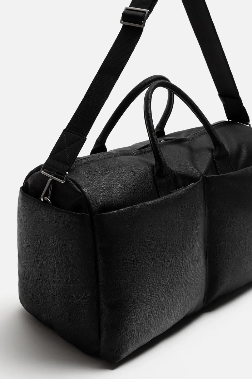 Maleta de viaje. Compartimento principal con cierre mediante cremallera y dos pequeños bolsillos interiores. Parte frontal con dos amplios bolsillos con cierre mediante cremallera. Dos bolsillos en los laterales. Asa de hombro ajustable y removible.