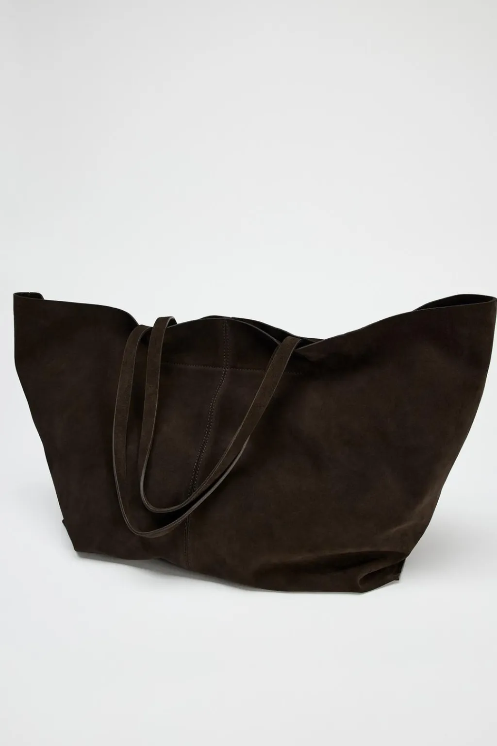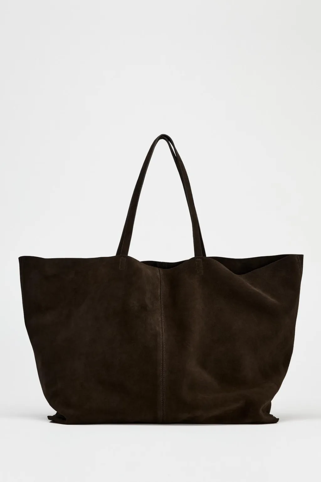 Bolso tipo maxi shopper en ante. Doble asa de hombro. Bolsillo interior con cremallera.