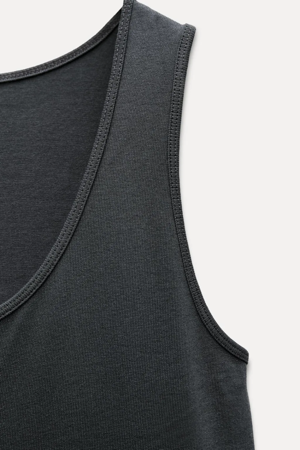Mono confeccionado en hilatura de algodón 100%. Escote redondo y manga sisa. Bolsillos laterales ocultos en costura. Pierna ancha.