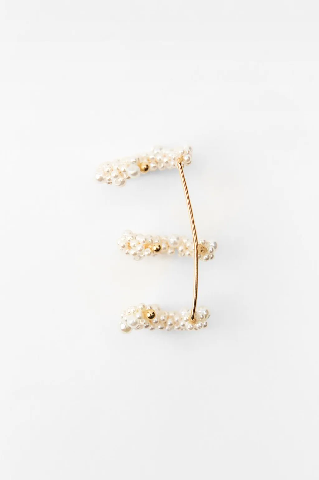 – Dos pendientes ear cuff metálicos con aplicación de perlas.