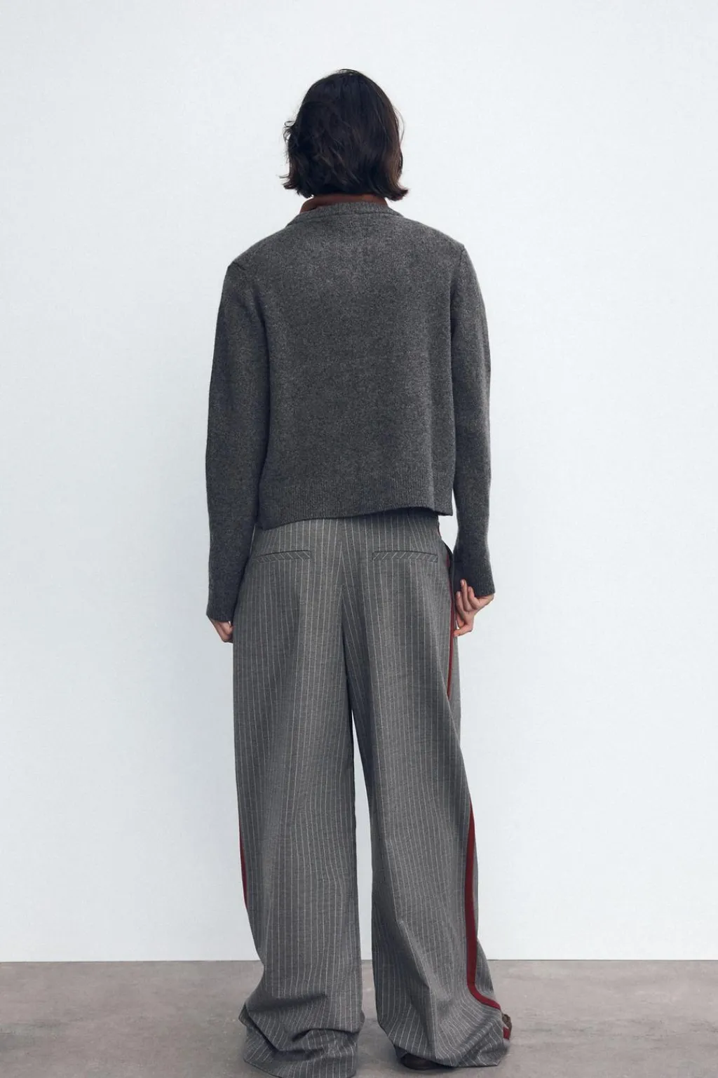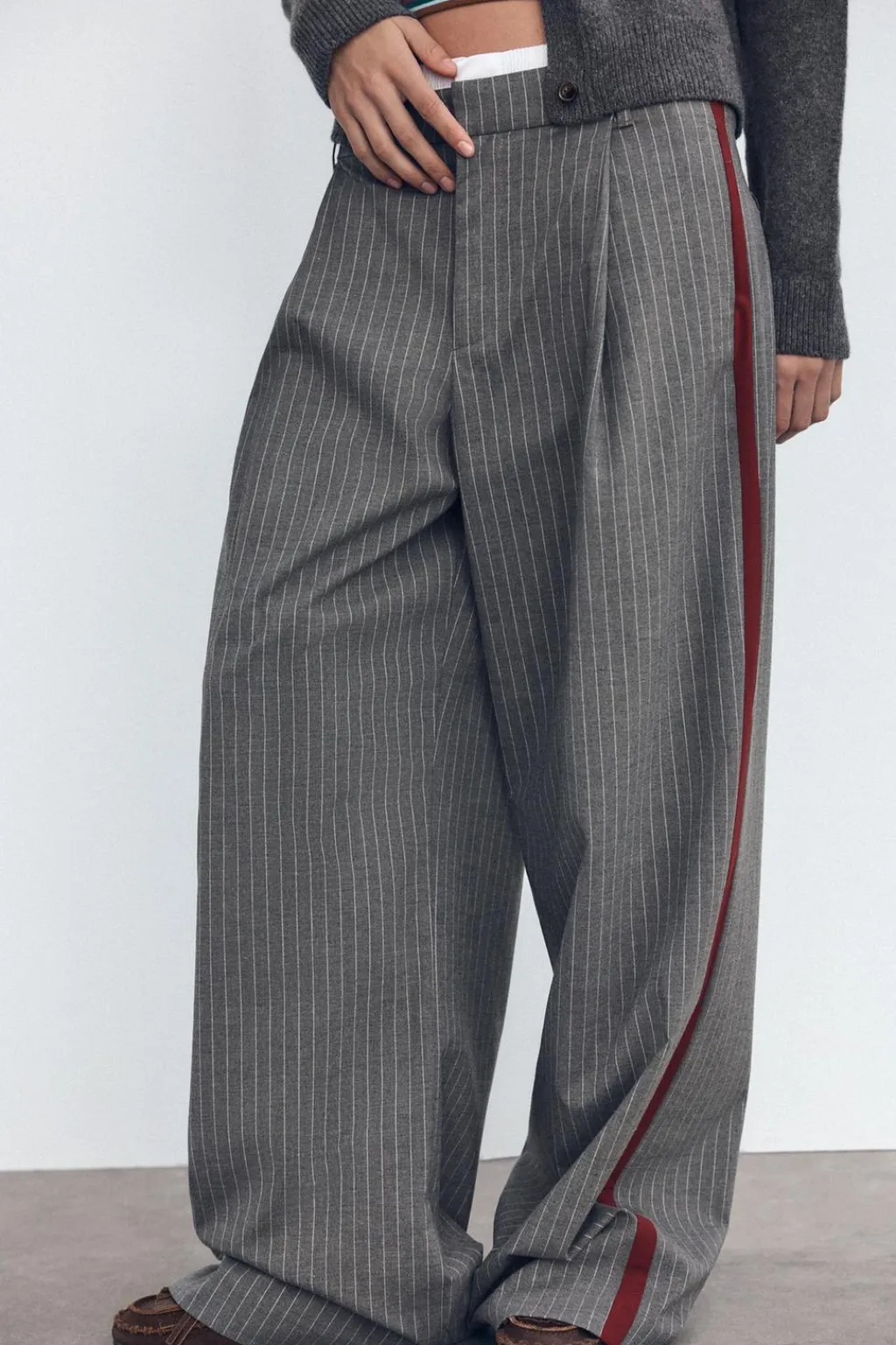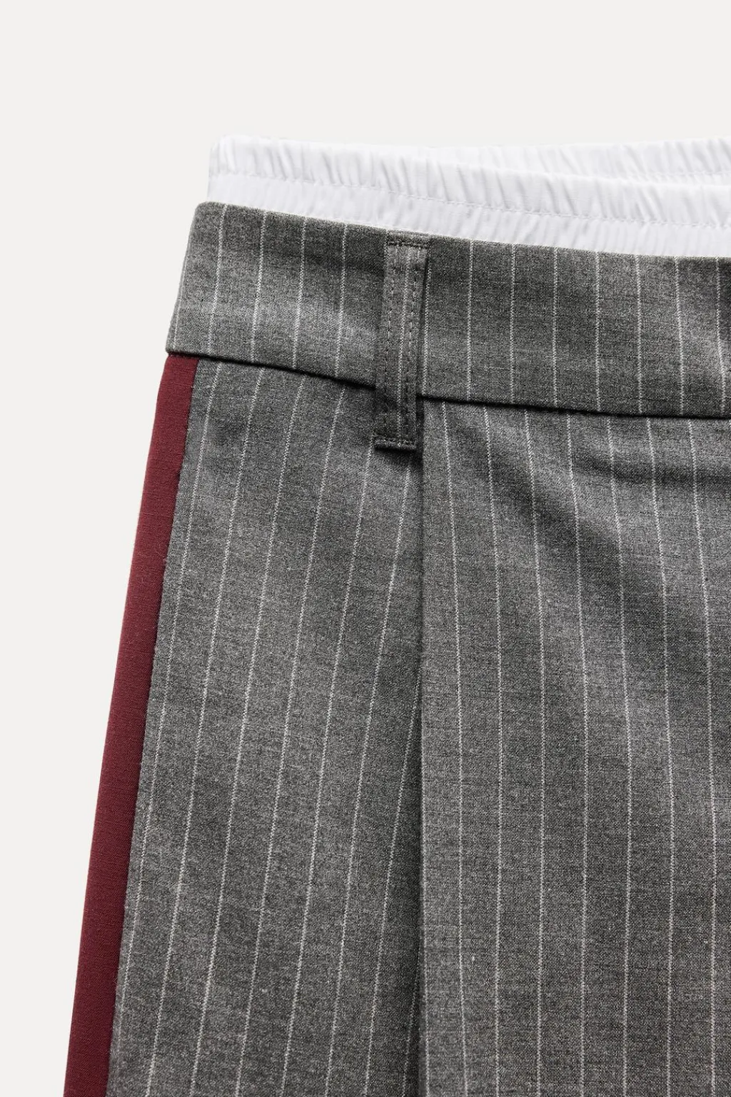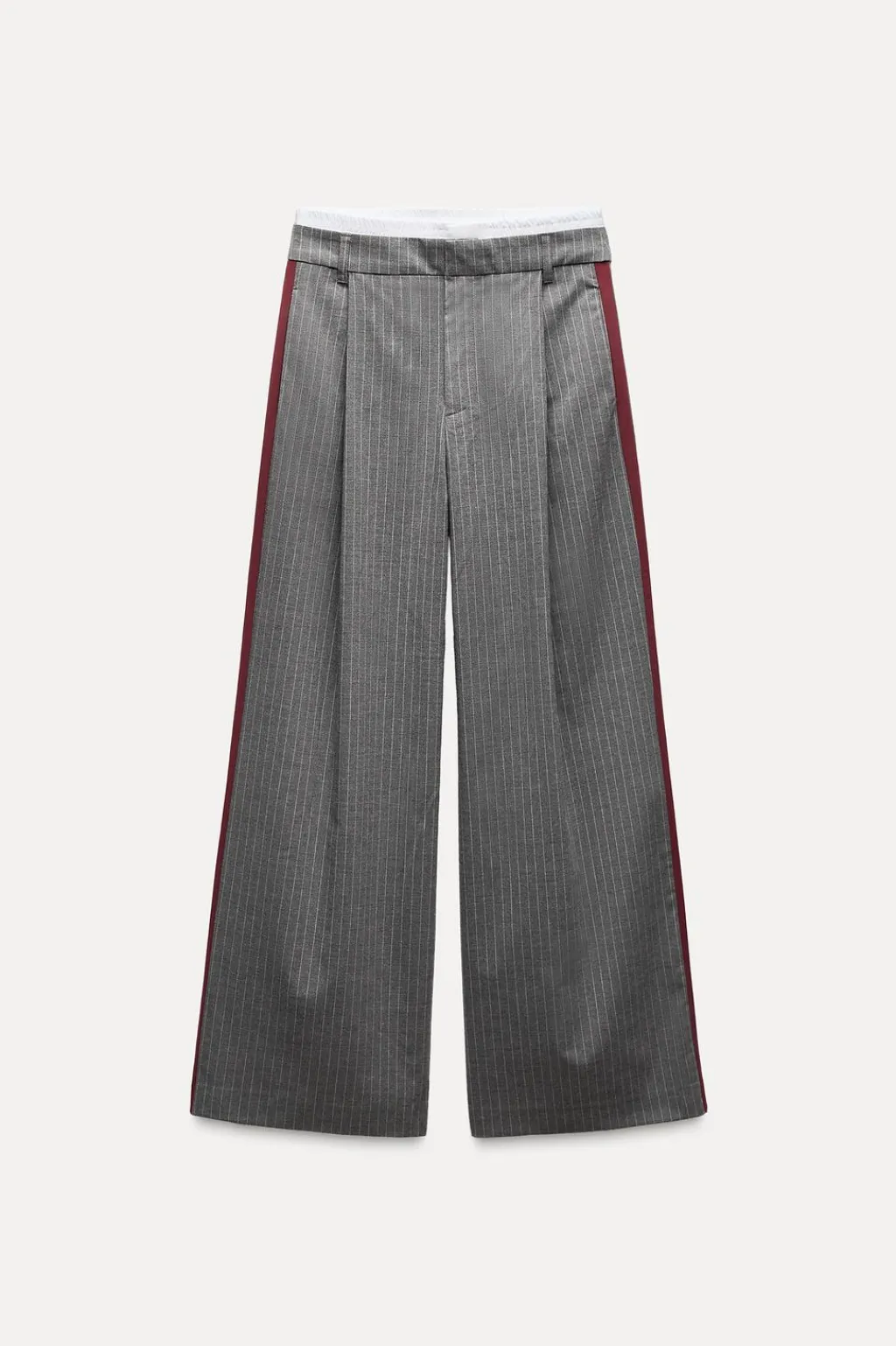 Pantalón de tiro medio con cintura elástica efecto boxer a contraste. Bolsillos laterales y falsos bolsillos de vivo en espalda. Pierna recta ancha. Banda lateral combinada a contraste. Cierre frontal con cremallera y ganchos metálicos.